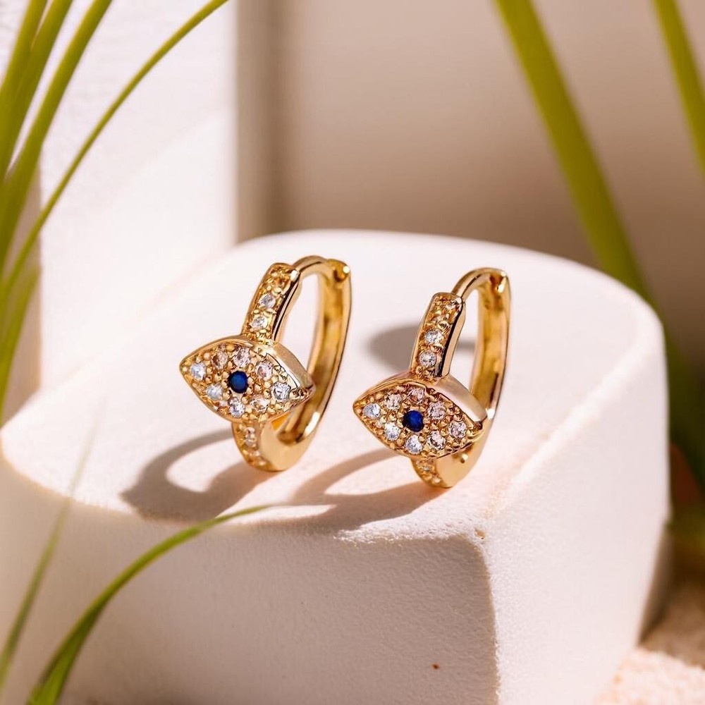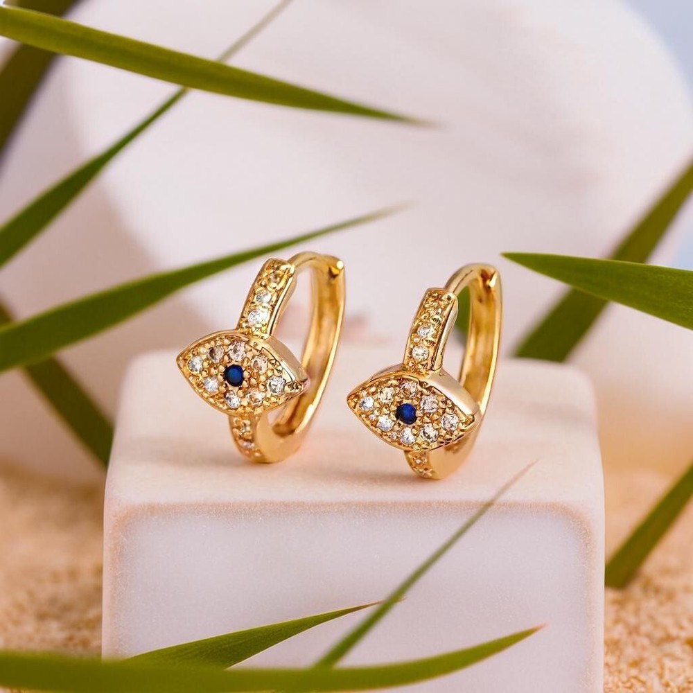 Elevate your jewelry collection with these stylish blue evil eye small hoop earrings, designed for the modern woman. Crafted with gold-plated zircon, these earrings feature a captivating blue evil eye charm that not only enhances their aesthetic but also symbolizes protection and good luck. The small hoop design makes them perfect for both casual outings and formal events, adding a touch of elegance to any outfit. Lightweight and comfortable, these earrings are ideal for everyday wear. They also make a thoughtful gift for her, ensuring she stays fashionable and protected. Trending now, these earrings are a must-have for anyone who loves unique, meaningful jewelry.