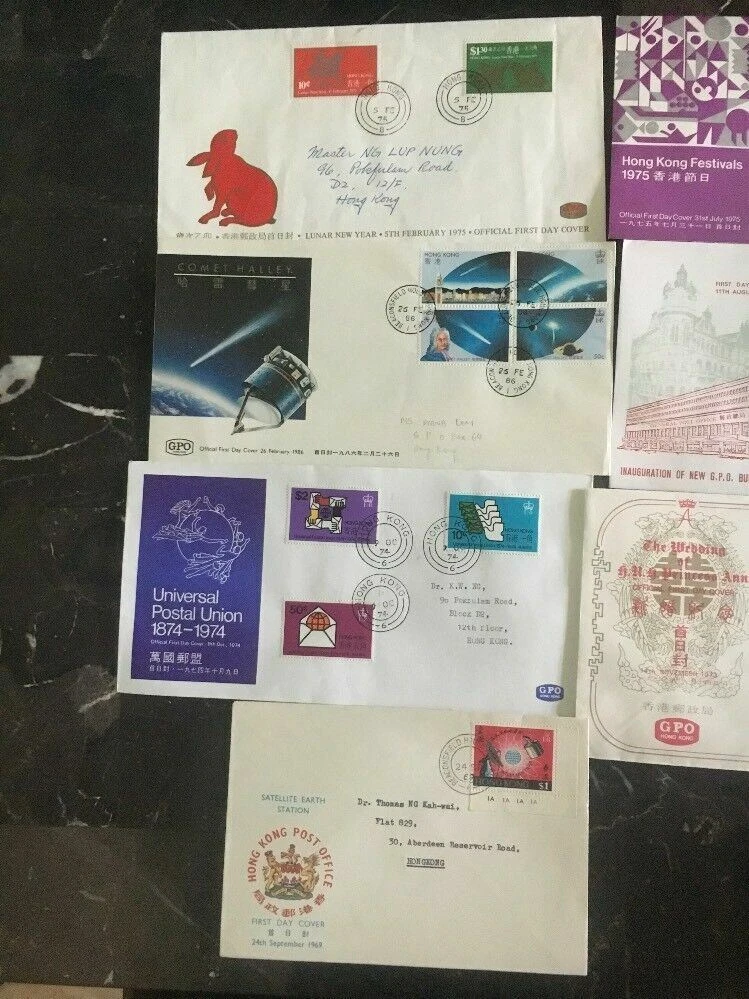 Up for auction is a beautiful lot of 10 first day Covers FDC from Hong Kong .Beautiful stamps and cancels. In good condition. Priced to sell. Nice deal don’t let it go! . Shipping will be a flat $2.00 within the continental U.S. for USPS mail. Overseas airmail shipping is $3.00. Questions? Please contact me at: azteccollectables at hotmail.com. Check out my other online auctions of rare and vintage stamps. My e bay store, Aztec Collectables, has a fine and growing selection of unique covers, stamps and postcards. Please make pay arrangements within 72 hours of winning the auction. I will combine shipping on multiple wins, if you want combined shipping wait until I invoice you.