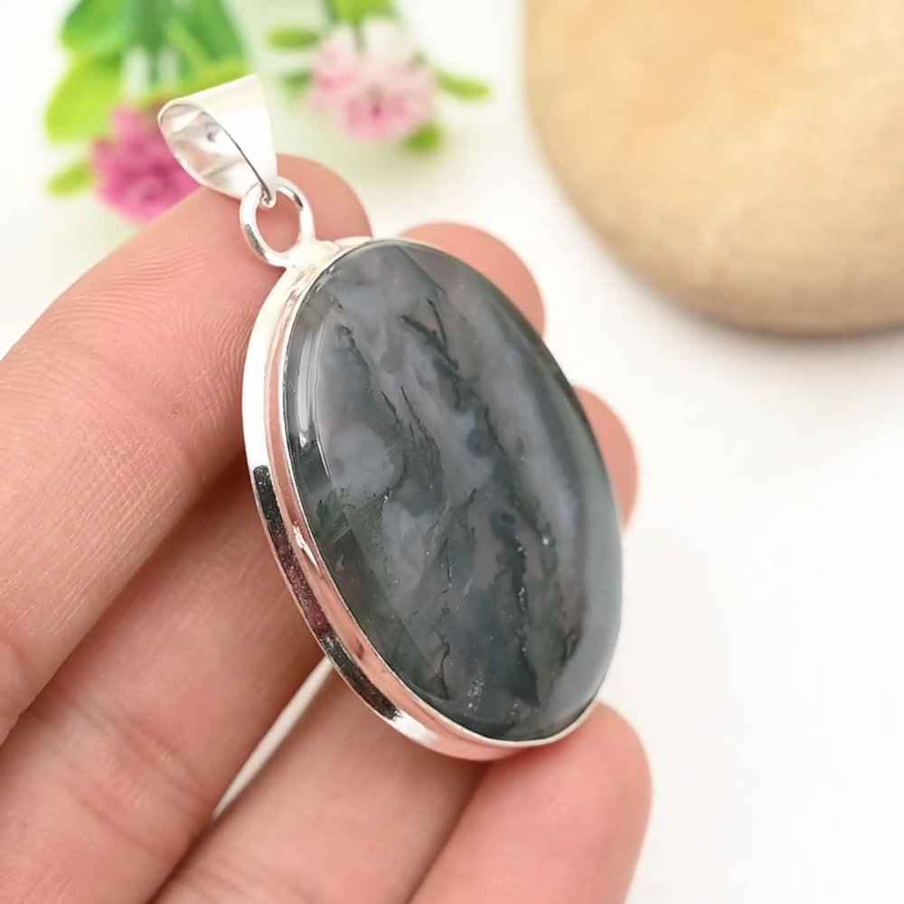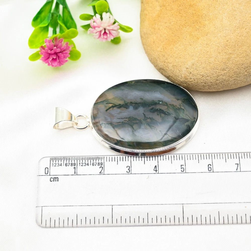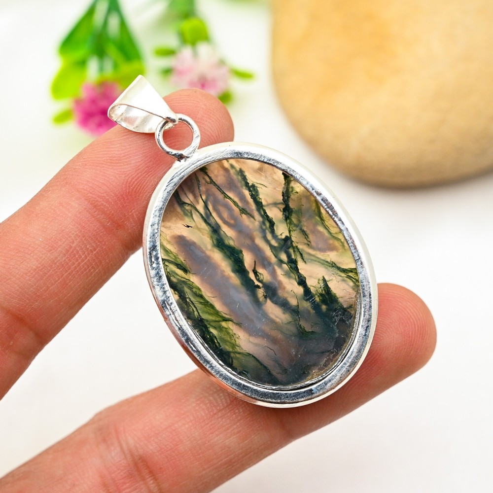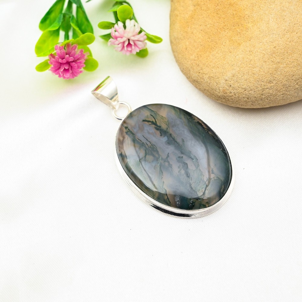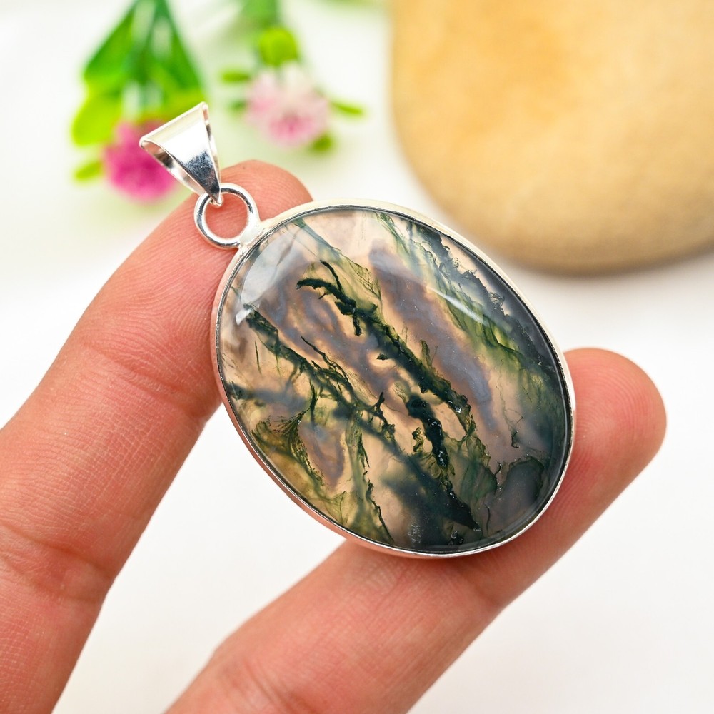 HomeStunning Moss Agate Pendant in 925 Sterling Silver Handmade Jewelry Gift