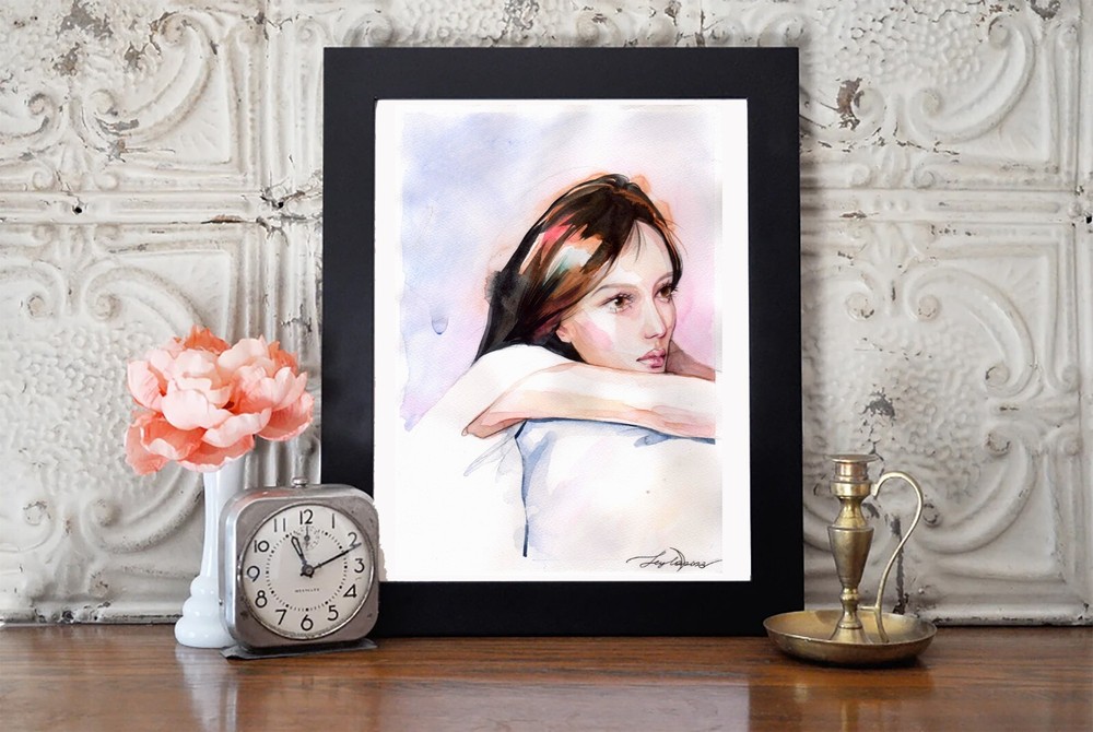 -ORIGINAL painting. This is not a copy or print. -Professional quality artists light fast, transparent watercolor paints and paper. -Signature on the front and on the back. -Size: 30*21 cm. / 11.8*8.2 inches -This painting is not framed. It will need to be framed behind glass. Place on a wall in your home away from direct sunlight. -The envelope comes protected with cardboard, so I make sure that you receive the painting without any damage. -Free shipping with tracking number beautiful portrait,wall art,woman art,woman painting,female painting,female art,feminine painting,feminine art,watercolor painting,woman watercolor portrait,beautiful woman art, cute girl portrait, asian girl painting, asian girl portrait