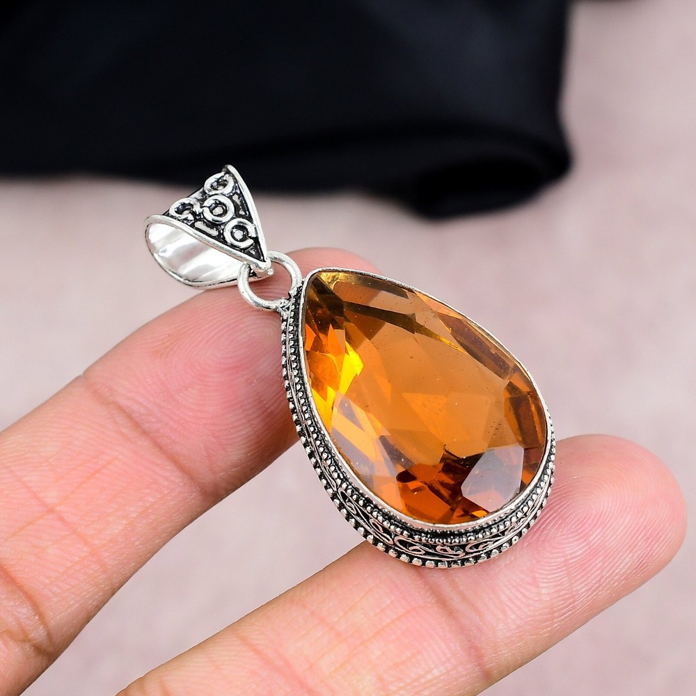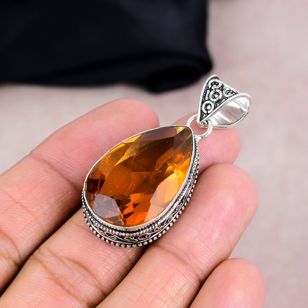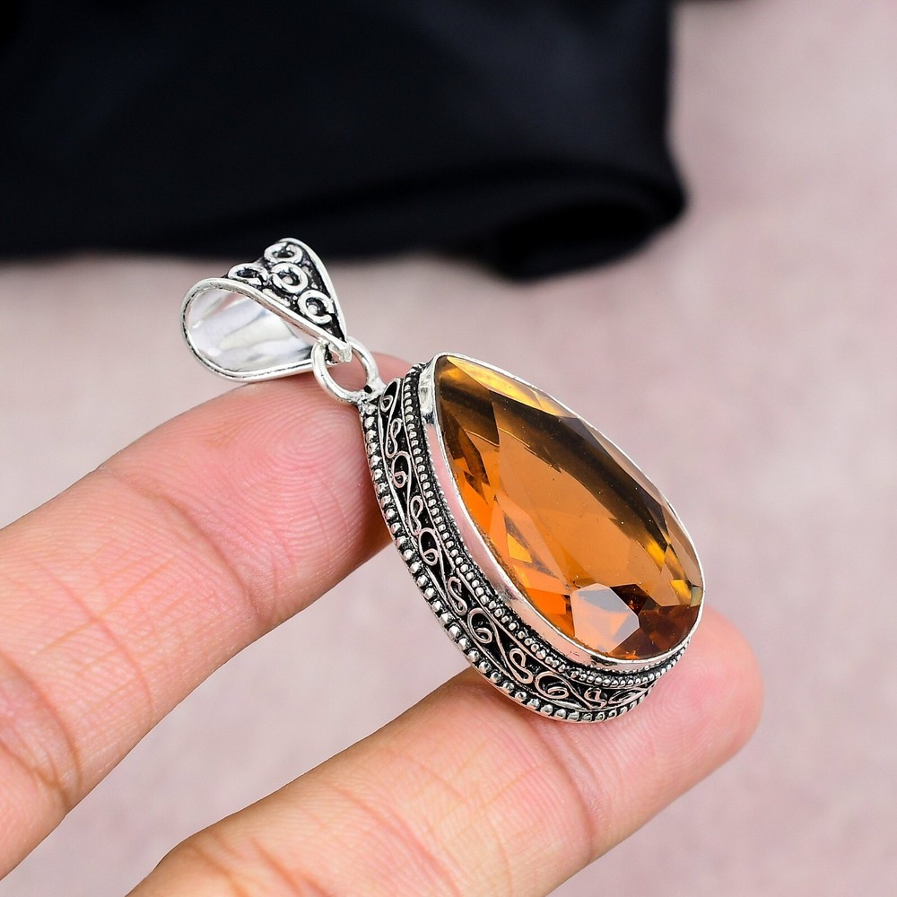 HomeStunning Pear Citrine Gemstone Pendant in 925 Sterling Silver Handmade Jewelry Gift