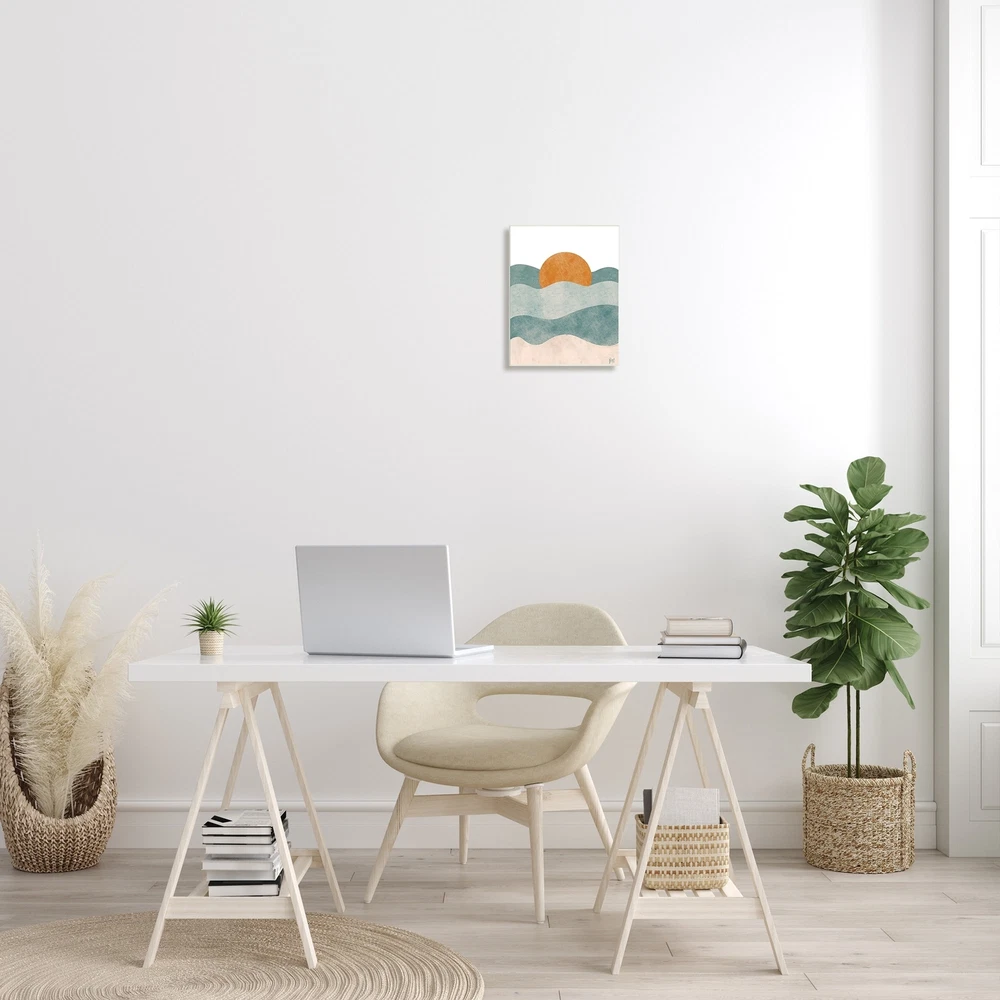 Stupell Abstract Beach Sunrise Layered Shape Ocean Waves Blue 10 x 15