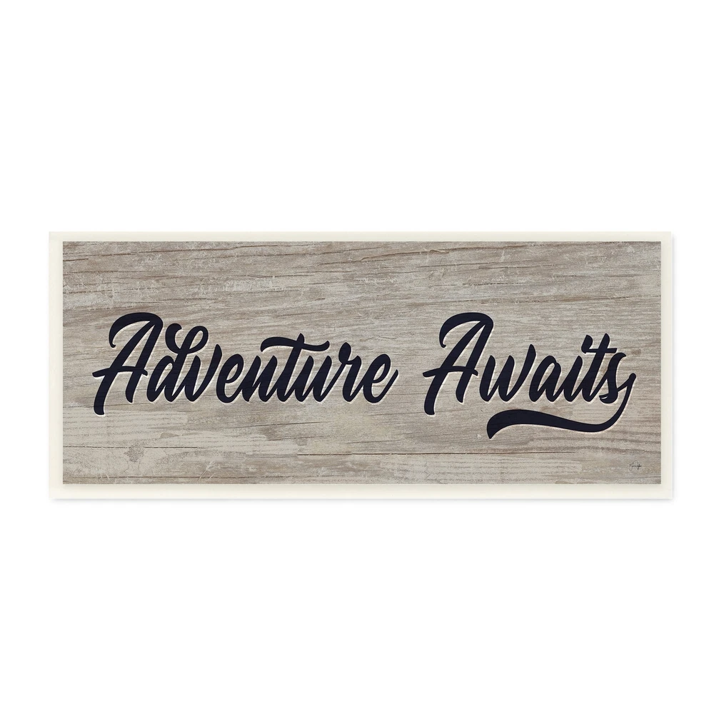 Proudly made in the USA, all of our wall plaques start off as high quality lithograph prints that are then mounted on durable 0.5 inch thick MDF wood. Each piece is hand finished and comes with a fresh layer of foil on the sides to give it a crisp clean look. It arrives ready to hang with no installation required, and comes with sturdy clear corners to keep it from damaging in transit.Features: Wall Art is Ready to Hang - No Installation or Hardware Needed. For Easy Set Up Lean or Layer Artwork on Shelf or Against Wall.All of our wall plaques start off as high quality lithograph prints that are then mounted on durable 0.5 inch thick MDF wood. Each piece is hand finished and comes with a fresh layer of foil on the sides to give it a crisp clean look. Made In USA.Artwork Relates To: Free Shipping Over $49.99* Details Stupell Adventure Awaits Rustic Vintage Typography Grain Pattern Wood Wall Art, Product Description: Proudly made in the USA, all of our wall plaques start off as high quality lithograph prints that are then mounted on durable 0.5 inch thick MDF wood. Each piece is hand finished and comes with a fresh layer of foil on the sides to give it a crisp clean look. It arrives ready to hang with no installation required, and comes with sturdy clear corners to keep it from damaging in transit. Features: Wall Art is Ready to Hang - No Installation or Hardware Needed. For Easy Set Up Lean or Layer Artwork on Shelf or Against Wall. All of our wall plaques start off as high quality lithograph prints that are then mounted on durable 0.5 inch thick MDF wood. Each piece is hand finished and comes with a fresh layer of foil on the sides to give it a crisp clean look. Made In USA. Artwork Relates ToAdventure Awaits; Typography; Vintage Design by Yass Naffas Designs