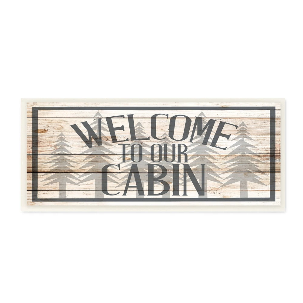Proudly made in the USA, all of our wall plaques start off as high quality lithograph prints that are then mounted on durable 0.5 inch thick MDF wood. Each piece is hand finished and comes with a fresh layer of foil on the sides to give it a crisp clean look. It arrives ready to hang with no installation required, and comes with sturdy clear corners to keep it from damaging in transit.Features:Wall Art is Ready to Hang - No Installation or Hardware Needed. For Easy Set Up Lean or Layer Artwork on Shelf or Against Wall.All of our wall plaques start off as high quality lithograph prints that are then mounted on durable 0.5 inch thick MDF wood. Each piece is hand finished and comes with a fresh layer of foil on the sides to give it a crisp clean look. Made In USA.Artwork Ideal for any Living Free Shipping Over $49.99* Details Stupell Cabin Welcome Sign Rustic Pine Trees Text Design Wood Wall Art - Grey Product Description: Proudly made in the USA, all of our wall plaques start off as high quality lithograph prints that are then mounted on durable 0.5 inch thick MDF wood. Each piece is hand finished and comes with a fresh layer of foil on the sides to give it a crisp clean look. It arrives ready to hang with no installation required, and comes with sturdy clear corners to keep it from damaging in transit. Features: Wall Art is Ready to Hang - No Installation or Hardware Needed. For Easy Set Up Lean or Layer Artwork on Shelf or Against Wall. All of our wall plaques start off as high quality lithograph prints that are then mounted on durable 0.5 inch thick MDF wood. Each piece is hand finished and comes with a fresh layer of foil on the sides to give it a crisp clean look. Made In USA. Artwork Ideal for any Living Room, Den, Entryway, Bedroom, Office, Kitchen or Bathroom. Design by Kim Allen