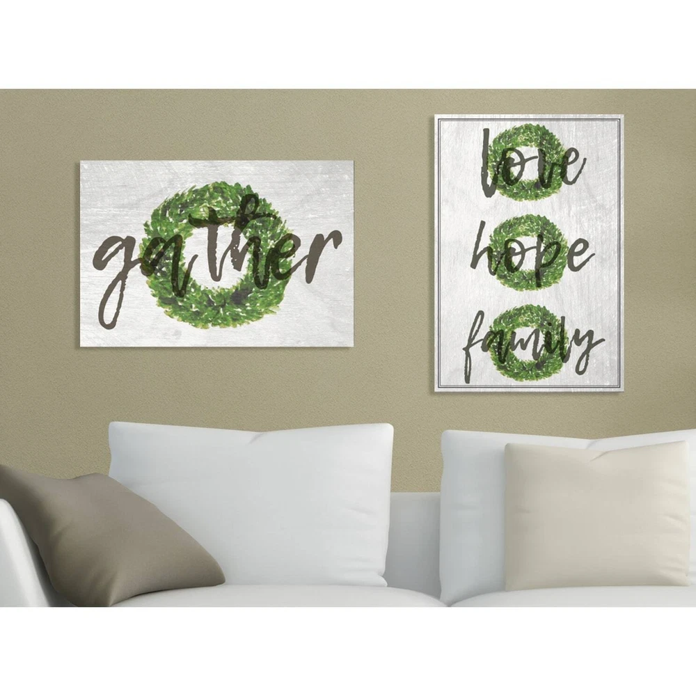 Stupell Industries has been providing quality wall art and decorative accessories for over forty years. Offering wall art and home decor in a variety of themes, mediums and sizes. Stupell's products range from canvas wall art, wood wall art, and framed giclee art. No matter the style, our modern, contemporary, traditional, or baby wall art and home decor is crafted with the utmost consideration and care. All of our products are brought to life at our facilities in Johnston, RI. The canvas is Hand Stretched on a 1.5 Inch Thick Wood Frame - Ready to Hang. On family inspired designs on quality canvas make personalizing your home easy. Design By Daphne Polselli. Free Shipping Over $49.99* Details Stupell Gather Boxwood Wreath Typography Stretched Canvas Wall Art Product Description: Stupell Industries has been providing quality wall art and decorative accessories for over forty years. Offering wall art and home decor in a variety of themes, mediums and sizes. Stupell's products range from canvas wall art, wood wall art, and framed giclee art. No matter the style, our modern, contemporary, traditional, or baby wall art and home decor is crafted with the utmost consideration and care. All of our products are brought to life at our facilities in Johnston, RI. The canvas is Hand Stretched on a 1.5 Inch Thick Wood Frame - Ready to Hang. On family inspired designs on quality canvas make personalizing your home easy. Design By Daphne Polselli.