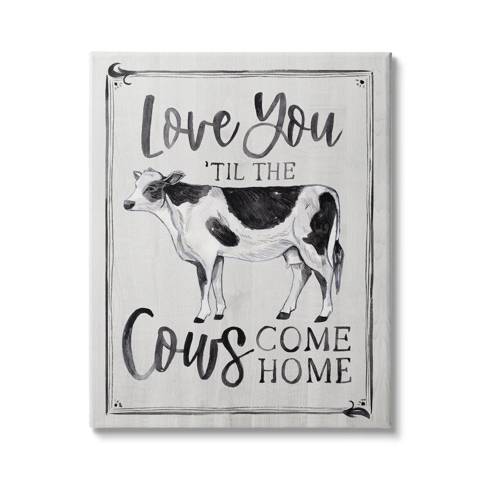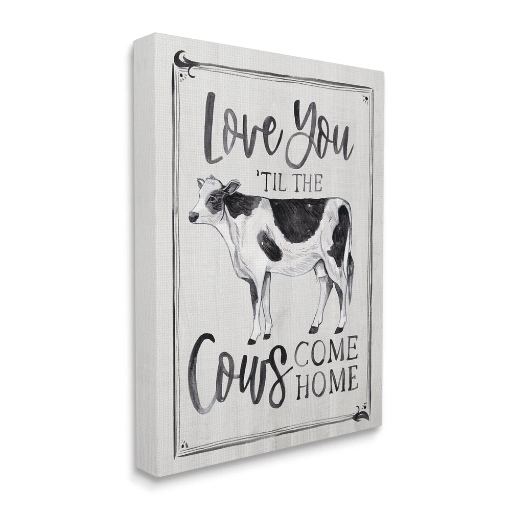 Proudly made in the USA, Our stretched canvas is created with the highest standards. We use only the highest quality inks and canvas on our in house Mimaki printers, and then hand cut and stretch each piece over a 1.5 inch thick wooden frame for hanging. The art comes ready to hang with no installation required.Features:Wall Art is Ready to Hang - No Installation or Hardware Needed. For Easy Set Up Lean or Layer Artwork on Shelf or Against Wall.Our stretched canvas is created with the highest standards. We use only the highest quality inks and canvas on our in house Mimaki printers, and then hand cut and stretch each piece over a 1.5 inch thick wooden frame for hanging. Made In USA.Artwork Ideal for any Living Room, Den, Entryway, Bedroom, Office, Kitchen or Bathroom.Design by Arrolynn Free Shipping Over $49.99* Details Stupell Love You 'til Cows Come Home Phrase Vintage Canvas Wall Art - Grey Product Description: Proudly made in the USA, Our stretched canvas is created with the highest standards. We use only the highest quality inks and canvas on our in house Mimaki printers, and then hand cut and stretch each piece over a 1.5 inch thick wooden frame for hanging. The art comes ready to hang with no installation required. Features: Wall Art is Ready to Hang - No Installation or Hardware Needed. For Easy Set Up Lean or Layer Artwork on Shelf or Against Wall. Our stretched canvas is created with the highest standards. We use only the highest quality inks and canvas on our in house Mimaki printers, and then hand cut and stretch each piece over a 1.5 inch thick wooden frame for hanging. Made In USA. Artwork Ideal for any Living Room, Den, Entryway, Bedroom, Office, Kitchen or Bathroom. Design by Arrolynn Weiderhold