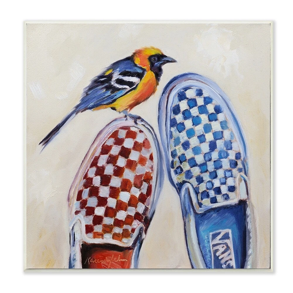 Stupell Oriole Bird on Vintage Checkered Sneakers Painting 12 x 12