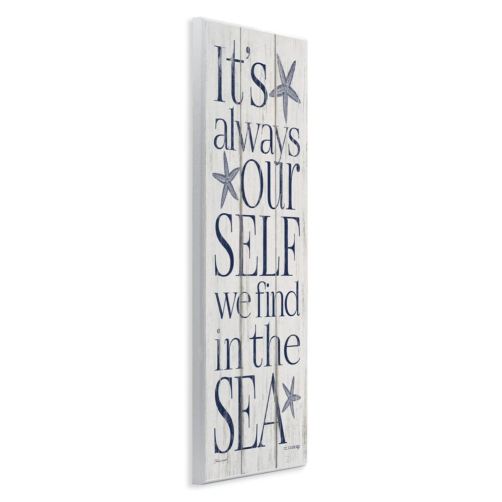 Proudly made in the USA, all of our wall plaques start off as high quality lithograph prints that are then mounted on durable MDF wood. Each piece is hand finished and comes with a fresh layer of foil on the sides to give it a crisp clean look. It arrives ready to hang with no installation required, and comes with sturdy clear corners to keep it from damaging in transit.Features:Wall Art is Ready to Hang - No Installation or Hardware Needed. For Easy Set Up Lean or Layer Artwork on Shelf or Against Wall.All of our wall plaques start off as high quality lithograph prints that are then mounted on durable 0.5 inch thick MDF wood. Each piece is hand finished and comes with a fresh layer of foil on the sides to give it a crisp clean look. Made In USA.Artwork Ideal for any Living Room, Den, Free Shipping Over $49.99* Details Stupell Our Self We Find In The Sea Planked Look, Wall Plaque, 7 x 0.5 x 17, Product Description: Proudly made in the USA, all of our wall plaques start off as high quality lithograph prints that are then mounted on durable MDF wood. Each piece is hand finished and comes with a fresh layer of foil on the sides to give it a crisp clean look. It arrives ready to hang with no installation required, and comes with sturdy clear corners to keep it from damaging in transit. Features: Wall Art is Ready to Hang - No Installation or Hardware Needed. For Easy Set Up Lean or Layer Artwork on Shelf or Against Wall. All of our wall plaques start off as high quality lithograph prints that are then mounted on durable 0.5 inch thick MDF wood. Each piece is hand finished and comes with a fresh layer of foil on the sides to give it a crisp clean look. Made In USA. Artwork Ideal for any Living Room, Den, Entryway, Bedroom, Office, Kitchen or Bathroom. Design by Stephanie Workman Marrott