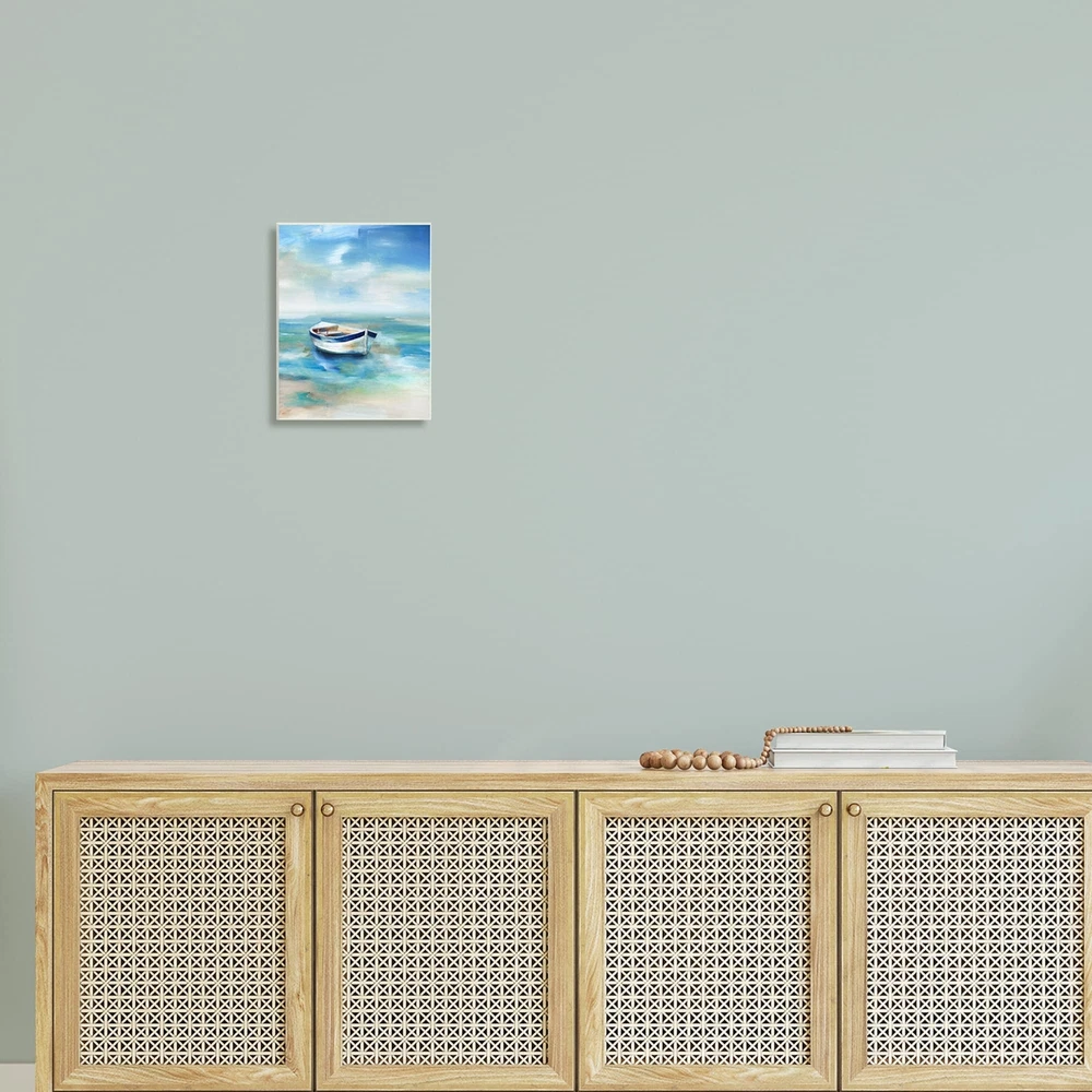 Proudly made in the USA, all of our wall plaques start off as high quality lithograph prints that are then mounted on durable 0.5 inch thick MDF wood. Each piece is hand finished and comes with a fresh layer of foil on the sides to give it a crisp clean look. It arrives ready to hang with no installation required, and comes with sturdy clear corners to keep it from damaging in transit.Features:Wall Art is Ready to Hang - No Installation or Hardware Needed. For Easy Set Up Lean or Layer Artwork on Shelf or Against Wall.All of our wall plaques start off as high quality lithograph prints that are then mounted on durable 0.5 inch thick MDF wood. Each piece is hand finished and comes with a fresh layer of foil on the sides to give it a crisp clean look. Made In USA.Artwork Ideal for any Living Free Shipping Over $49.99* Details Stupell Serene Misty Morning Row Boat Floating Ocean Wood Wall Art - Blue Product Description: Proudly made in the USA, all of our wall plaques start off as high quality lithograph prints that are then mounted on durable 0.5 inch thick MDF wood. Each piece is hand finished and comes with a fresh layer of foil on the sides to give it a crisp clean look. It arrives ready to hang with no installation required, and comes with sturdy clear corners to keep it from damaging in transit. Features: Wall Art is Ready to Hang - No Installation or Hardware Needed. For Easy Set Up Lean or Layer Artwork on Shelf or Against Wall. All of our wall plaques start off as high quality lithograph prints that are then mounted on durable 0.5 inch thick MDF wood. Each piece is hand finished and comes with a fresh layer of foil on the sides to give it a crisp clean look. Made In USA. Artwork Ideal for any Living Room, Den, Entryway, Bedroom, Office, Kitchen or Bathroom. Design by Nan