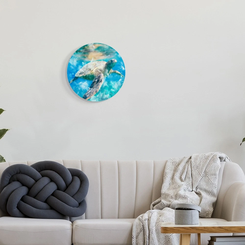 Proudly made in the USA, all of our wall plaques start off as high quality lithograph prints that are then mounted on durable 0.5 inch thick MDF wood. Each piece is hand finished and comes with a fresh layer of white foil on the sides to give it a crisp clean look. Art arrives ready to hang with no installation required.Features:Add a unique touch to any home with our Circular Shaped Wall Art. All of our wall plaques start off as high quality lithograph prints that are then mounted on durable 0.5 inch thick MDF wood. Each piece is hand finished and comes with a fresh layer of foil on the sides to give it a crisp clean look. Made In USA.Wall Art is Ready to Hang - No Installation or Hardware Needed. For Easy Set Up Use A Picture Stand to Lean or Layer Artwork on Shelf or Against Free Shipping Over $49.99* Details Stupell Swimming Sea Turtle Aquatic Reptile Design, 12 x 12, Design By Kim Allen Product Description: Proudly made in the USA, all of our wall plaques start off as high quality lithograph prints that are then mounted on durable 0.5 inch thick MDF wood. Each piece is hand finished and comes with a fresh layer of white foil on the sides to give it a crisp clean look. Art arrives ready to hang with no installation required. Features: Add a unique touch to any home with our Circular Shaped Wall Art. All of our wall plaques start off as high quality lithograph prints that are then mounted on durable 0.5 inch thick MDF wood. Each piece is hand finished and comes with a fresh layer of foil on the sides to give it a crisp clean look. Made In USA. Wall Art is Ready to Hang - No Installation or Hardware Needed. For Easy Set Up Use A Picture Stand to Lean or Layer Artwork on Shelf or Against Wall. Artwork Ideal for any Living Room, Den, Entryway, Bedroom, Office, Kitchen or Bathroom. Design by Kim Allen