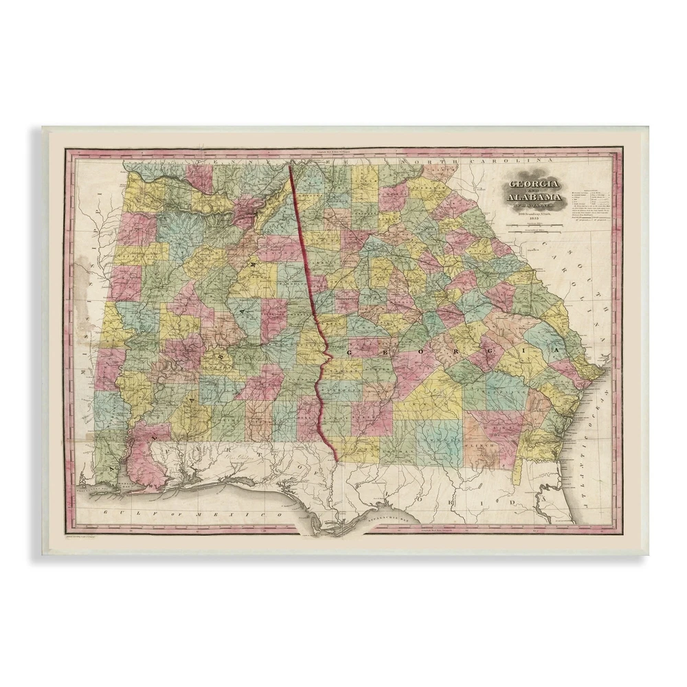 Proudly made in the USA, all of All of our wall plaques start off as high quality lithograph prints that are then mounted on durable 0.5 inch thick MDF wood. Each piece is hand finished and comes with a fresh layer of foil on the sides to give it a crisp clean look. It arrives ready to hang with no installation required, and comes with sturdy clear corners to keep it from damaging in transit.Features:Wall Art is Ready to Hang - No Installation or Hardware Needed. For Easy Set Up Lean or Layer Artwork on Shelf or Against Wall.All of our wall plaques start off as high quality lithograph prints that are then mounted on durable 0.5 inch thick MDF wood. Each piece is hand finished and comes with a fresh layer of foil on the sides to give it a crisp clean look. Made In USA.Artwork Ideal for any Free Shipping Over $49.99* Details Stupell Vintage Georgia Alabama State Map Regional Borders 1853 Wood Wall Art, Product Description: Proudly made in the USA, all of All of our wall plaques start off as high quality lithograph prints that are then mounted on durable 0.5 inch thick MDF wood. Each piece is hand finished and comes with a fresh layer of foil on the sides to give it a crisp clean look. It arrives ready to hang with no installation required, and comes with sturdy clear corners to keep it from damaging in transit. Features: Wall Art is Ready to Hang - No Installation or Hardware Needed. For Easy Set Up Lean or Layer Artwork on Shelf or Against Wall. All of our wall plaques start off as high quality lithograph prints that are then mounted on durable 0.5 inch thick MDF wood. Each piece is hand finished and comes with a fresh layer of foil on the sides to give it a crisp clean look. Made In USA. Artwork Ideal for any Living Room, Den, Entryway, Bedroom, Office, Kitchen or Bathroom. Design by Daphne Polselli
