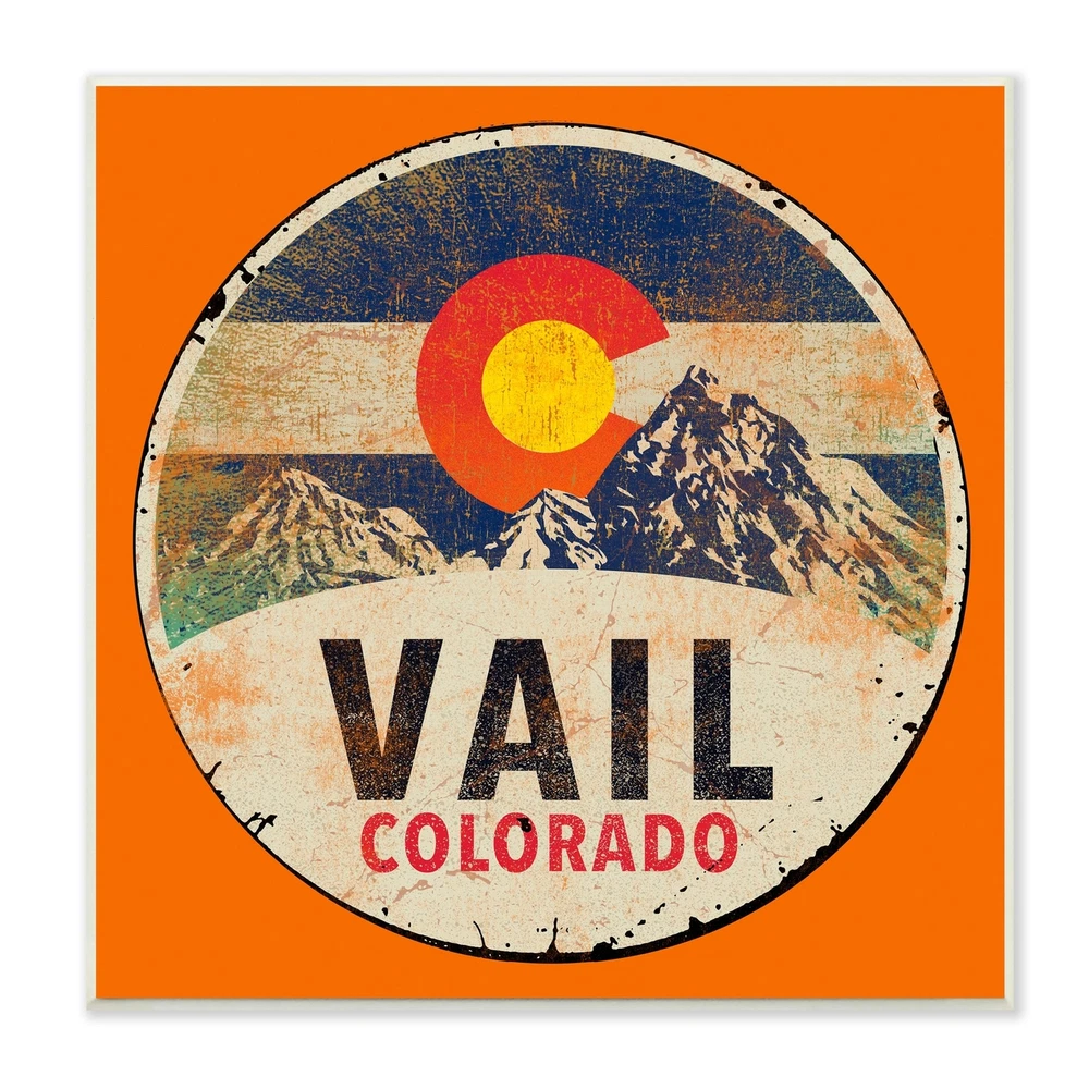 Proudly made in the USA, all of All of our wall plaques start off as high quality lithograph prints that are then mounted on durable 0.5 inch thick MDF wood. Each piece is hand finished and comes with a fresh layer of foil on the sides to give it a crisp clean look. It arrives ready to hang with no installation required, and comes with sturdy clear corners to keep it from damaging in transit.Features:Wall Art is Ready to Hang - No Installation or Hardware Needed. For Easy Set Up Lean or Layer Artwork on Shelf or Against Wall.All of our wall plaques start off as high quality lithograph prints that are then mounted on durable 0.5 inch thick MDF wood. Each piece is hand finished and comes with a fresh layer of foil on the sides to give it a crisp clean look. Made In USA.Artwork Ideal for any Free Shipping Over $49.99* Details Stupell Vintage Vail Colorado Pendant Snowy Mountains Bold Orange Wood Wall Art Product Description: Proudly made in the USA, all of All of our wall plaques start off as high quality lithograph prints that are then mounted on durable 0.5 inch thick MDF wood. Each piece is hand finished and comes with a fresh layer of foil on the sides to give it a crisp clean look. It arrives ready to hang with no installation required, and comes with sturdy clear corners to keep it from damaging in transit. Features: Wall Art is Ready to Hang - No Installation or Hardware Needed. For Easy Set Up Lean or Layer Artwork on Shelf or Against Wall. All of our wall plaques start off as high quality lithograph prints that are then mounted on durable 0.5 inch thick MDF wood. Each piece is hand finished and comes with a fresh layer of foil on the sides to give it a crisp clean look. Made In USA. Artwork Ideal for any Living Room, Den, Entryway, Bedroom, Office, Kitchen or Bathroom. Design by Jim Baldwin