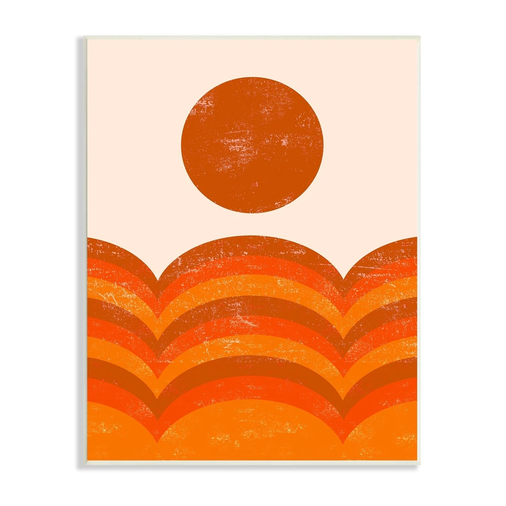 Proudly made in the USA, all of All of our wall plaques start off as high quality lithograph prints that are then mounted on durable 0.5 inch thick MDF wood. Each piece is hand finished and comes with a fresh layer of foil on the sides to give it a crisp clean look. It arrives ready to hang with no installation required, and comes with sturdy clear corners to keep it from damaging in transit.Features:Wall Art is Ready to Hang - No Installation or Hardware Needed. For Easy Set Up Lean or Layer Artwork on Shelf or Against Wall.All of our wall plaques start off as high quality lithograph prints that are then mounted on durable 0.5 inch thick MDF wood. Each piece is hand finished and comes with a fresh layer of foil on the sides to give it a crisp clean look. Made In USA.Artwork Ideal for any Free Shipping Over $49.99* Details Stupell Warm Summer Sun Landscape Abstract Orange Mountain Hills Wood Wall Art Product Description: Proudly made in the USA, all of All of our wall plaques start off as high quality lithograph prints that are then mounted on durable 0.5 inch thick MDF wood. Each piece is hand finished and comes with a fresh layer of foil on the sides to give it a crisp clean look. It arrives ready to hang with no installation required, and comes with sturdy clear corners to keep it from damaging in transit. Features: Wall Art is Ready to Hang - No Installation or Hardware Needed. For Easy Set Up Lean or Layer Artwork on Shelf or Against Wall. All of our wall plaques start off as high quality lithograph prints that are then mounted on durable 0.5 inch thick MDF wood. Each piece is hand finished and comes with a fresh layer of foil on the sides to give it a crisp clean look. Made In USA. Artwork Ideal for any Living Room, Den, Entryway, Bedroom, Office, Kitchen or Bathroom. Design by Daphne Polselli