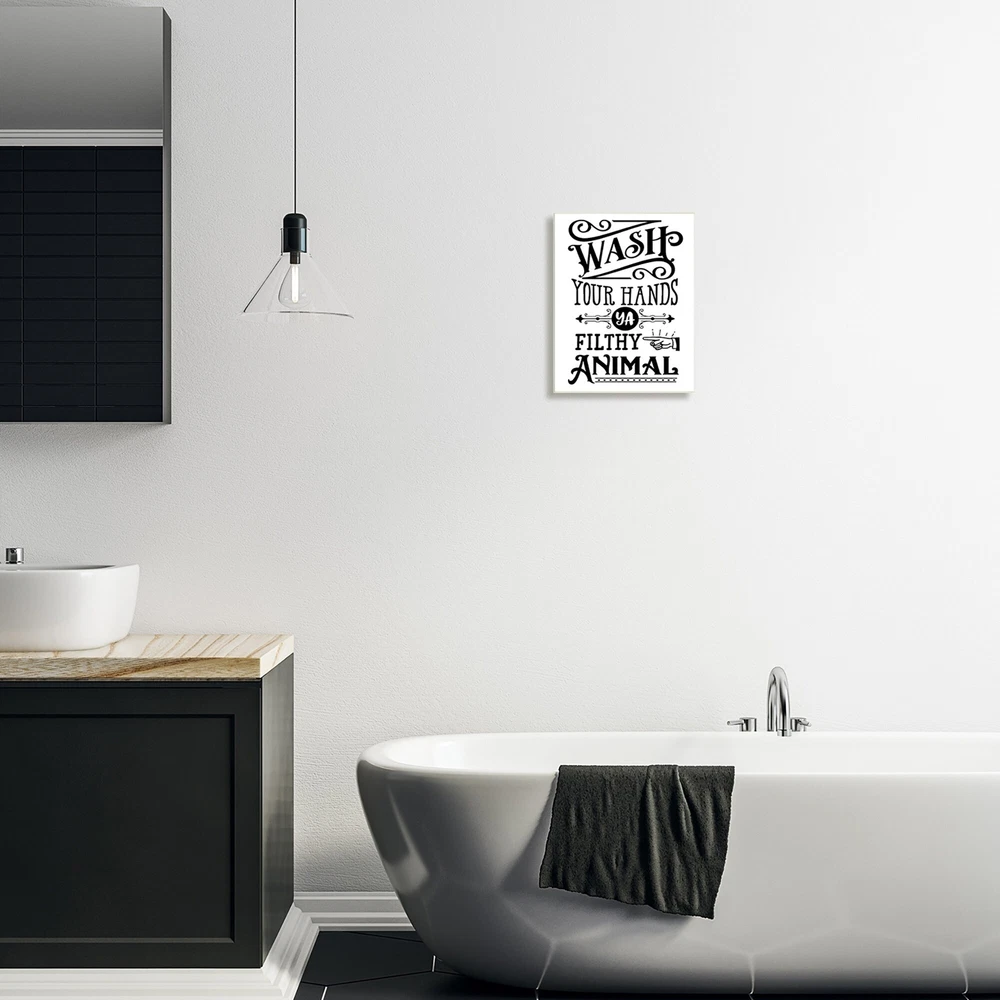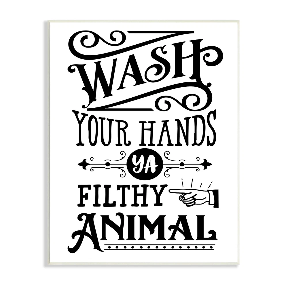 Proudly made in the USA, all of our wall plaques start off as high quality lithograph prints that are then mounted on durable 0.5 inch thick MDF wood. Each piece is hand finished and comes with a fresh layer of foil on the sides to give it a crisp clean look. It arrives ready to hang with no installation required, and comes with sturdy clear corners to keep it from damaging in transit.Features: Wall Art is Ready to Hang - No Installation or Hardware Needed. For Easy Set Up Lean or Layer Artwork on Shelf or Against Wall.All of our wall plaques start off as high quality lithograph prints that are then mounted on durable 0.5 inch thick MDF wood. Each piece is hand finished and comes with a fresh layer of foil on the sides to give it a crisp clean look. Made In USA.Artwork Relates To: Free Shipping Over $49.99* Details Stupell Wash Your Hands Vintage Symbol Serif Typography Wood Wall Art, Design by Product Description: Proudly made in the USA, all of our wall plaques start off as high quality lithograph prints that are then mounted on durable 0.5 inch thick MDF wood. Each piece is hand finished and comes with a fresh layer of foil on the sides to give it a crisp clean look. It arrives ready to hang with no installation required, and comes with sturdy clear corners to keep it from damaging in transit. Features: Wall Art is Ready to Hang - No Installation or Hardware Needed. For Easy Set Up Lean or Layer Artwork on Shelf or Against Wall. All of our wall plaques start off as high quality lithograph prints that are then mounted on durable 0.5 inch thick MDF wood. Each piece is hand finished and comes with a fresh layer of foil on the sides to give it a crisp clean look. Made In USA. Artwork Relates ToTypography; Bathroom; Wash Hands; Funny; Vintage Design by Lettered and Lined