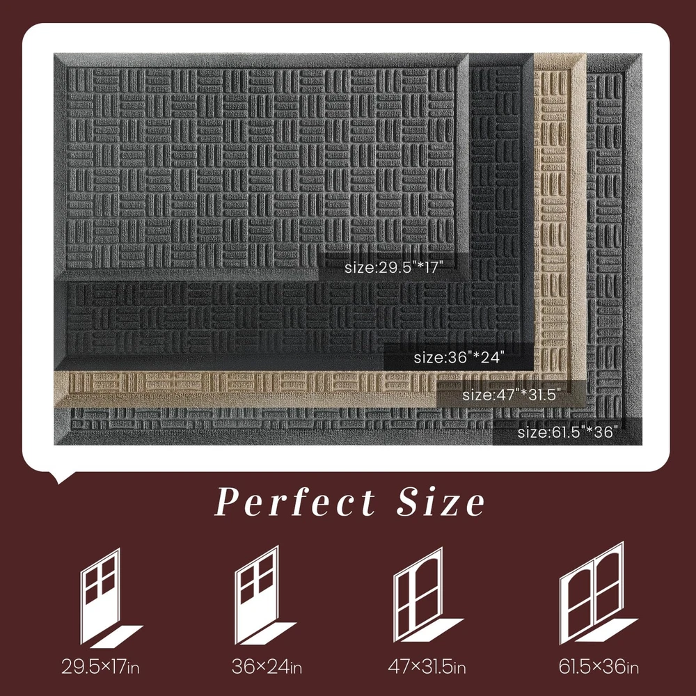 DIRT TRAPPER & DURABLE: doormat is made of high-quality absorbent polypropylene fabric, uses double layer technology which absorb moisture and dirt from shoes quickly, makes your floors clean and dry. The pattern is durable and hard to scatter. It can be used for several years. NON SLIP RUBBER BACKING: outdoor mats' natural rubber backing provides higher tensile strength and tear resistance, and less odor than synthetic rubber. Also make it anti slip on dry smooth floor, helps keep mat firmly in place, that it won't slip or slide, more safe and cozy. EASY TO CLEAN: The floor mat is designed for easy to clean. You just use vacuum to clean it or shake it off. For deep clean,you can rinse it with garden hose and let it dry. On the other hand, welcome mats' color are resistant to dirt. VERSATILE USE: Our doormats are used for all weather, from hot summer to cold winter, works as front door mat, outdoor door mat, welcome door mats, garage rugs and mats, indoor mats for entryway, shoe mat, dog doormat, floor mats, ect. It can scrap off mud, slush, grass or retain snow. IDEAL SIZE: 29.5" x 17", 36" x 24", 24"x48", 47" x 32", 61.5" x 36", 1/4 inch thick , low profile design so doors won't get stuck. Heavy duty extra large door mat entrance rug carpet widely used for outdoor indoor, exterior patio entry way, garage, garden, shopmall with high traffic inside and outside. *lucky*vorobey* Kindly note: If you would like to order more quantity than shown is available, you are welcome to place one order fox maximum available quantity and place one more order again because we always have more, than shows in available items. Best wishes TRANSLATE with x English Arabic Hebrew Polish Bulgarian Hindi Portuguese Catalan Hmong Daw Romanian Chinese Simplified Hungarian Russian Chinese Traditional Indonesian Slovak Czech Italian Slovenian Danish Japanese Spanish Dutch Klingon Swedish English Korean Thai Estonian Latvian Turkish Finnish Lithuanian Ukrainian French Malay Urdu German Maltese Vietnamese Greek Norwegian Welsh Haitian Creole Persian
