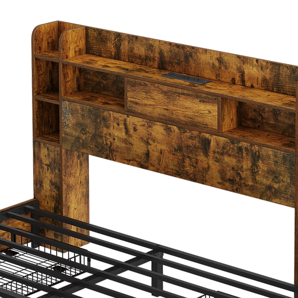 Sturdy Metal Bed Frame 89.7x61.4 with Headboard Storage and 4 Underbed Drawers