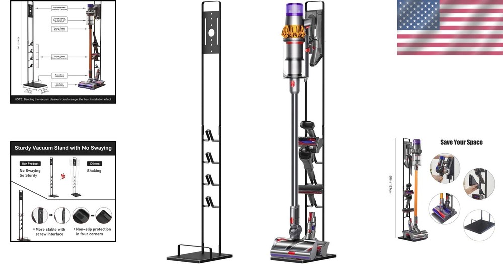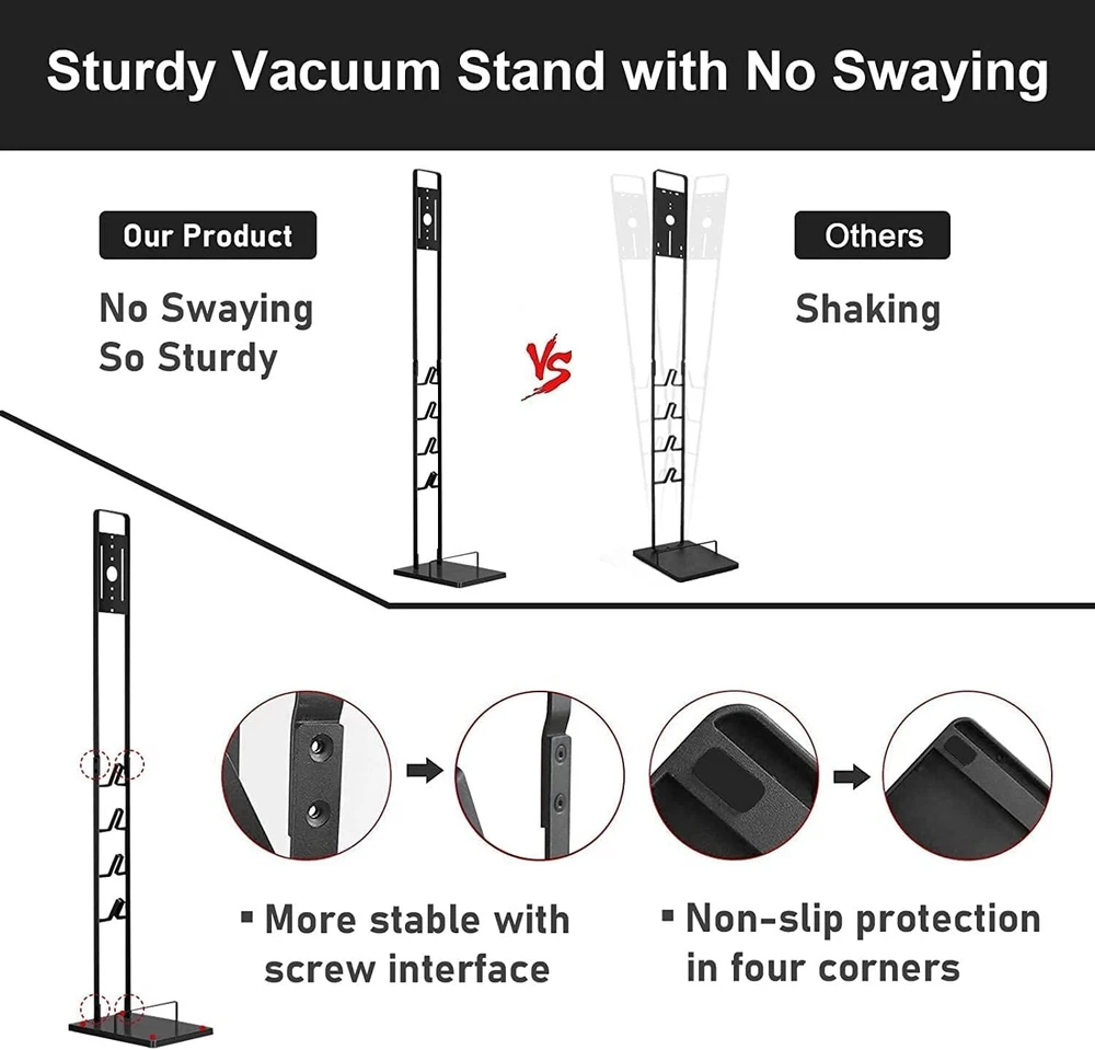 This stand is a game-changer for my Dyson! No more leaning my vacuum against the wall—it holds my V10 securely with its heavy, stable base. The metal build feels premium, and setup took seconds with no drilling. Perfect fit, great space-saver, and looks sleek in my laundry room. Highly recommend!