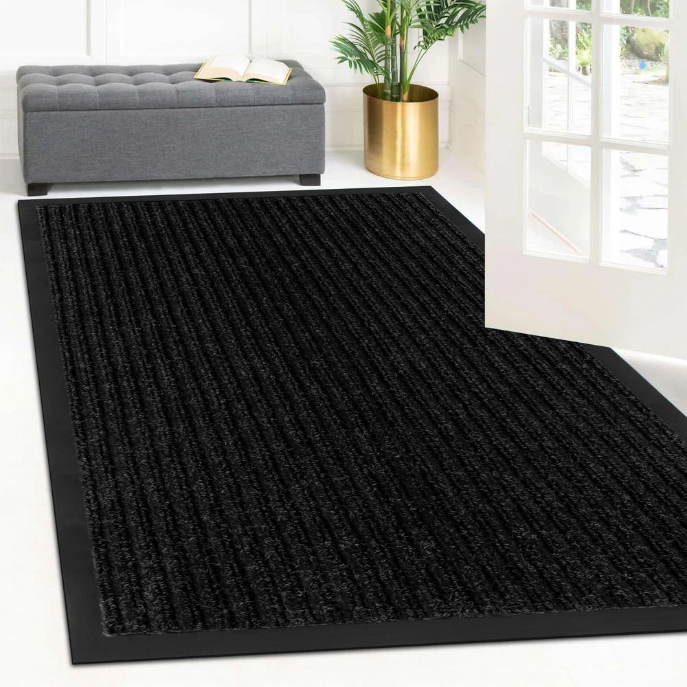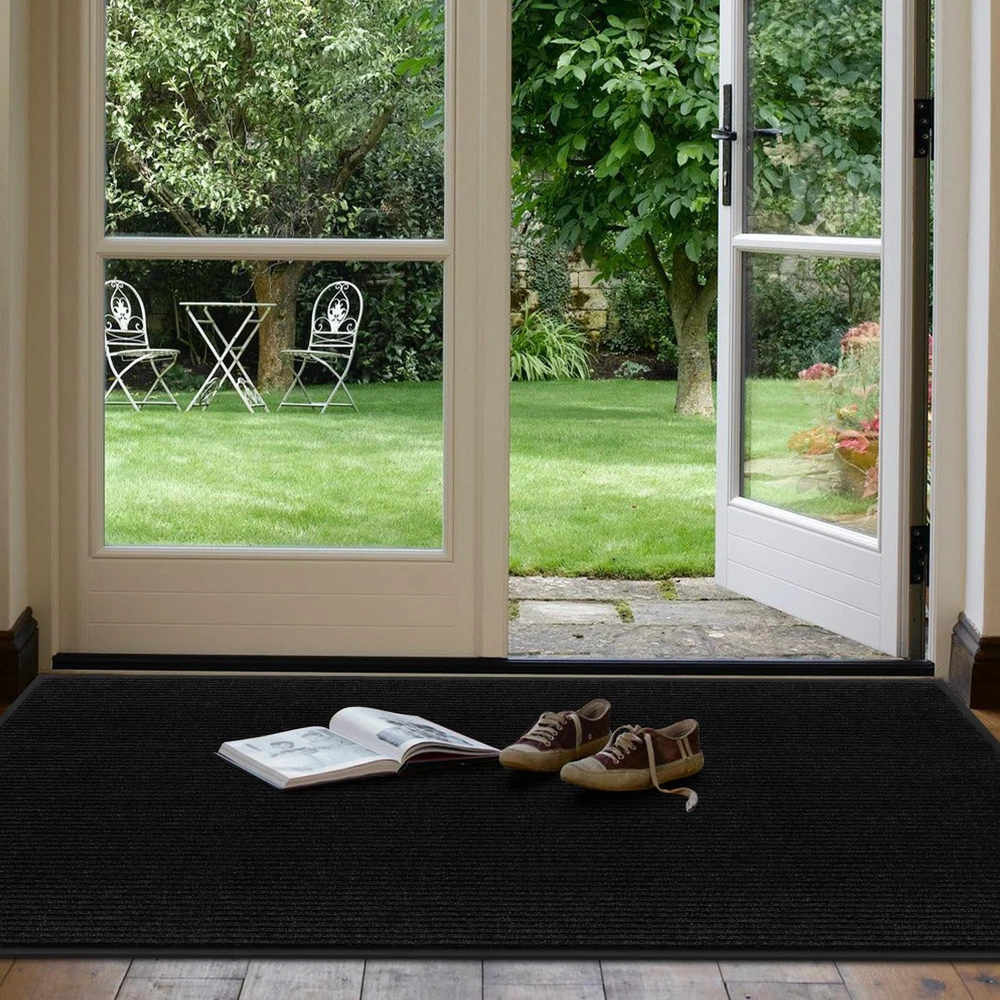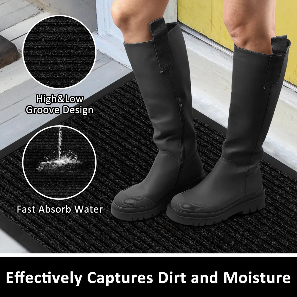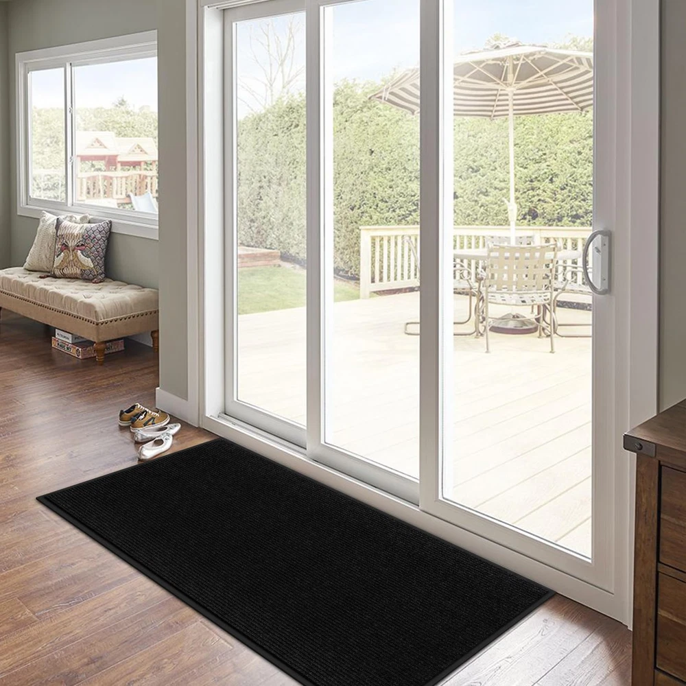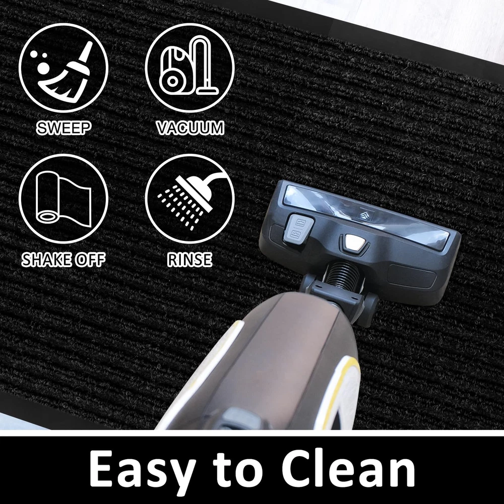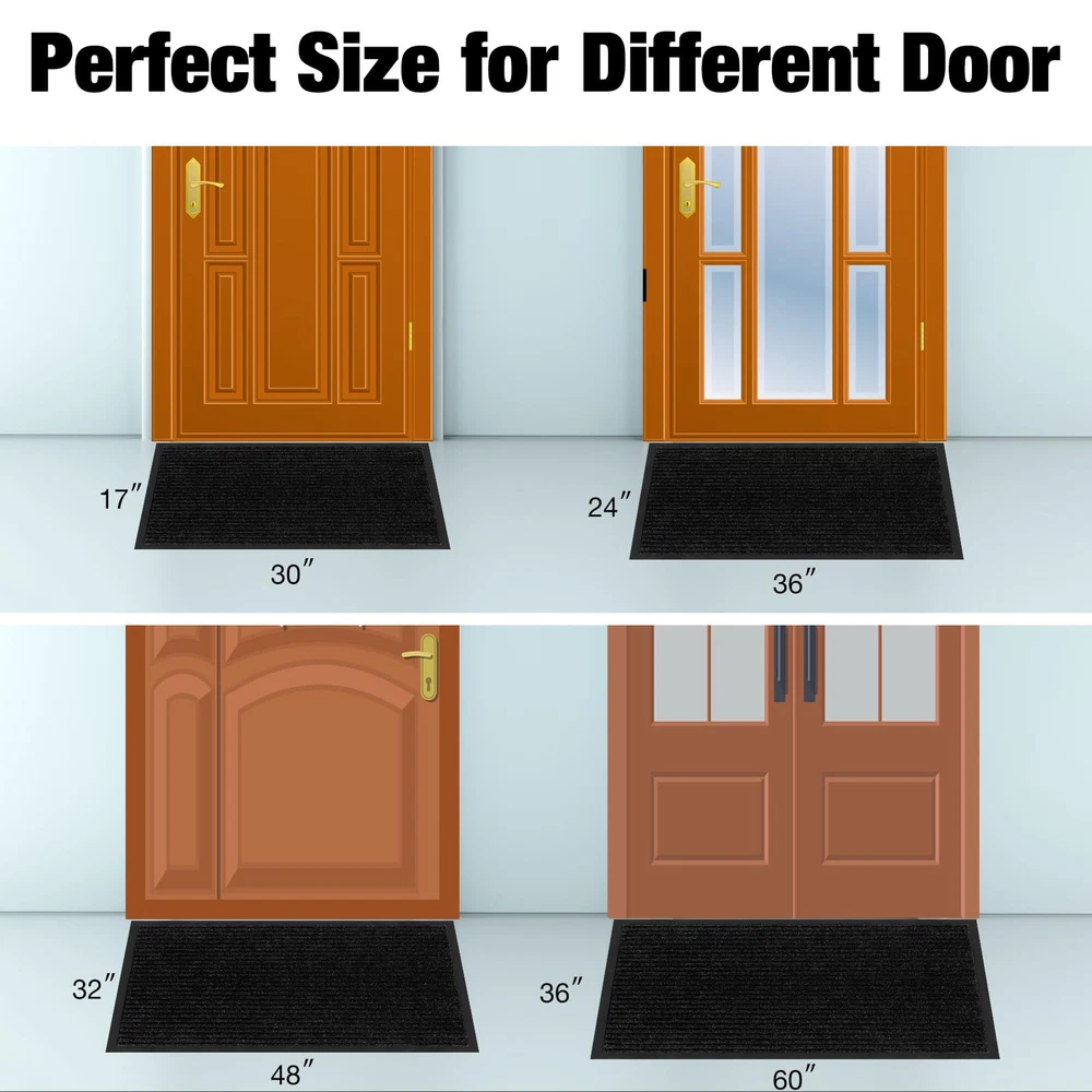 Anti-slip Design:Welcome Mat is made from premium polyester and recycled rubber,ensuring a green and long-lasting material that is resistant to wear,sun. Rubber padding layer is added to the edge of the doormat to prevent water from leaking onto the floor,ensuring that the entrance doormat stays in place on different types of floors. Grove Design: floor mat features a grove design,which enhances its ability to remove dust and dirt compared to regular floor mats.These doormats outdoor or indoor entrance, which quickly captures dirt and moisture from shoes and boots, effectively preventing secondary floor contamination. No Profile &No Shedding: front door mat is designed to be 0.25 inch thickness,which is the perfect size for any door opening over it.As an inside doormat,its strong and practical surface fiber,not easily shedding, making it an ideal rug for pets,so you don't have to worry about cleaning the fibers. Easy Clean&Maintain: Simply clean way is only used a water hose or vacuum cleaner to clean it.Afterward,leave it to dry in a well-ventilated area quickly.Even after multiple cleanings or extended use, door mats will maintain their original form and continue to be used.front door mat let your housework become simply and easy. Wide Usage: This versatile dust-proof door mat can be used as both an indoor and outdoor mat.Place it in hallways,back doors,patio doors,porch doors,garage doors, bedrooms,entrance ways, laundry rooms,living rooms,apartments,offices, or RVs.It is especially suitable as a pet rug, kitchen rug or bathroom rug to provide perfect Choose.
