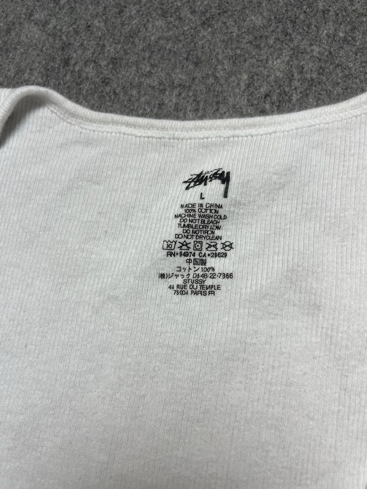 Pattern:SolidVintage:NoFit:RegularBrand:StussyFeatures:All SeasonsSize Type:RegularType:T-ShirtMaterial:CottonCountry/Region of Manufacture:MexicoSleeve Length:SleevelessTheme:Designer, Hip HopDepartment:MenSize:LColor:White