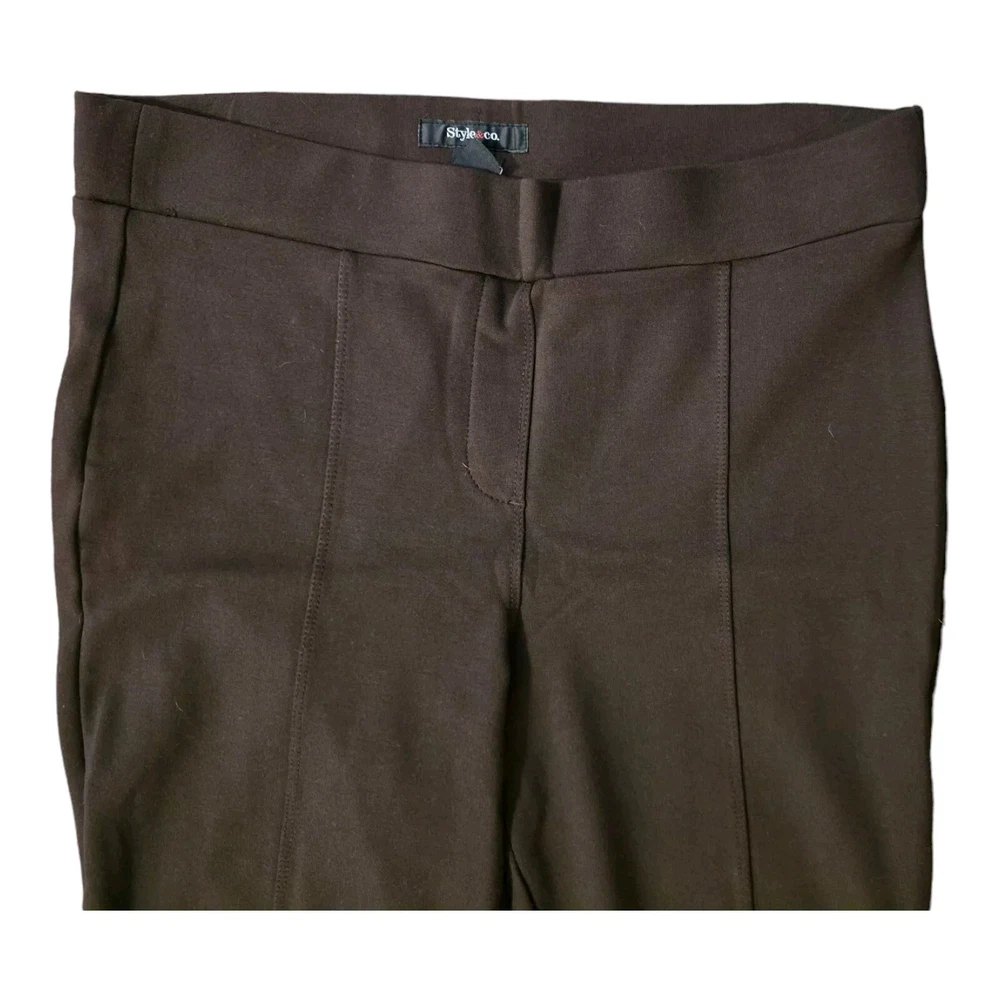Upgrade your wardrobe staples with the Style&co. Brown Mid Rise Leggings, a versatile piece that effortlessly blends comfort and style. Crafted with a blend of cotton and spandex, these leggings offer a stretchable fit that contours to your shape for a flattering look. The solid brown hue makes them a breeze to mix and match with other wardrobe favorites. Designed with a modern skinny style in mind, these leggings feature an elastic waistband that ensures a snug and comfortable fit, perfect for both casual outings and dressier occasions. The high-rise cut complements the silhouette, and the machine-washable fabric allows for easy care. Whether you're stepping out in the spring or layering for the winter, these leggings are a year-round go-to. Our items have been stored in a dust and smoke free environment. The photos are of the actual item and not stock pictures. There may be color, shade and hue variances due to different monitors and device settings. I do my best to take informative photos and to state colors accurately, but different shades of the same color family are subjective at best. Please contact us prior to leaving feedback, regarding questions or concerns, so we can work together to reach an equitable solution. Thanks for looking and know that you can bid with confidence regarding our merchandise and our customer service.