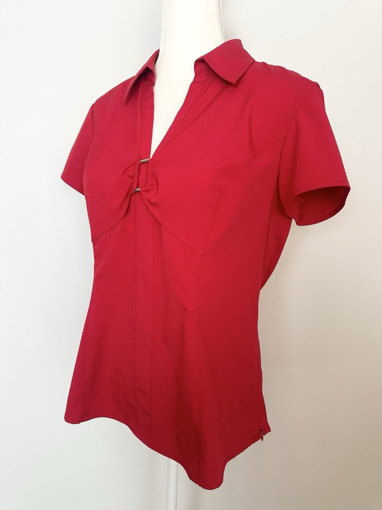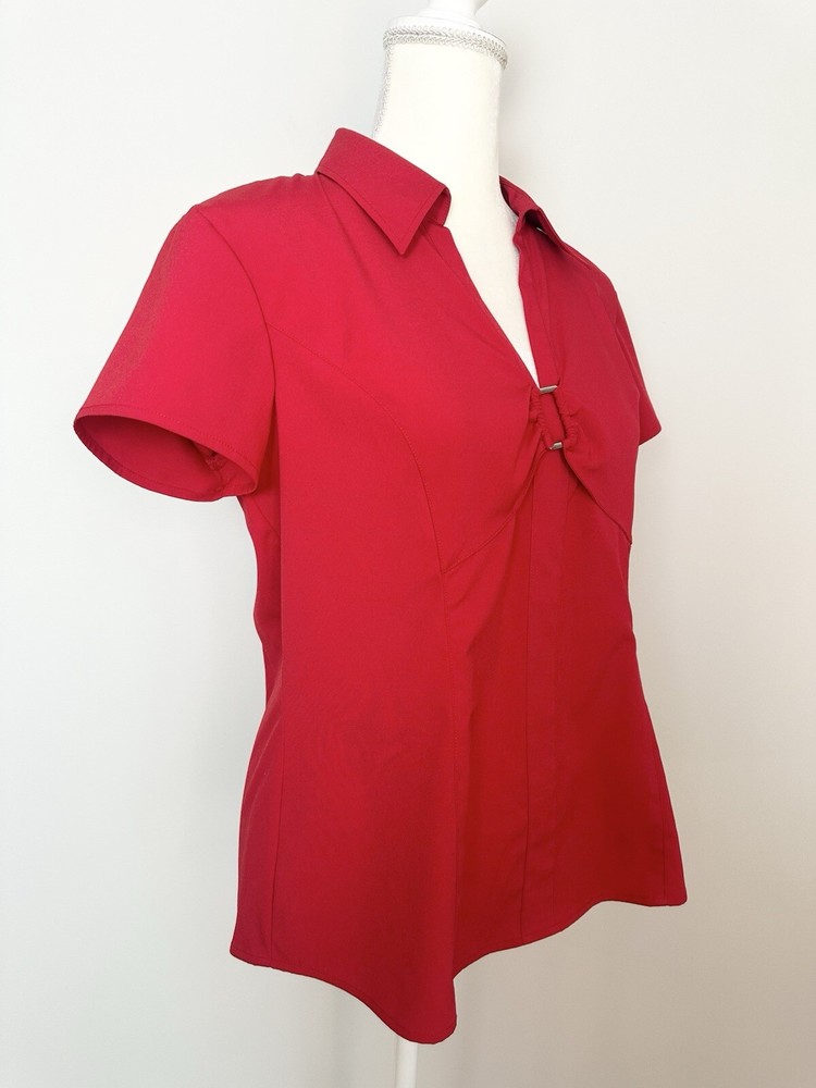 Item Details: Style & Co. Stretch Women's Blouse Size 12 Red V Neck with Beaded Accent Short Sleeves Size Zipper Closure 95% Polyester, 5% Spandex Machine Washable Excellent Condition! Measurements are Approximate: Armpit to armpit measures 20" Shoulder to hem measures 25" Please see photos as they are part of the description. Please feel free to message me with any questions. Thank you! For more great items visit our store at https://www.ebay.com/str/bcstylehouse