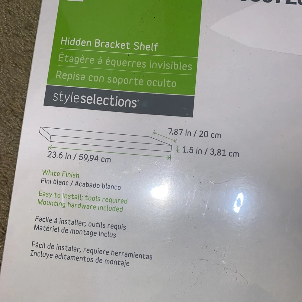 Style Selections White Hidden Bracket Shelf #0307258 23.6" X 7.87"