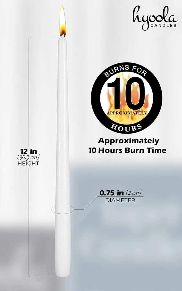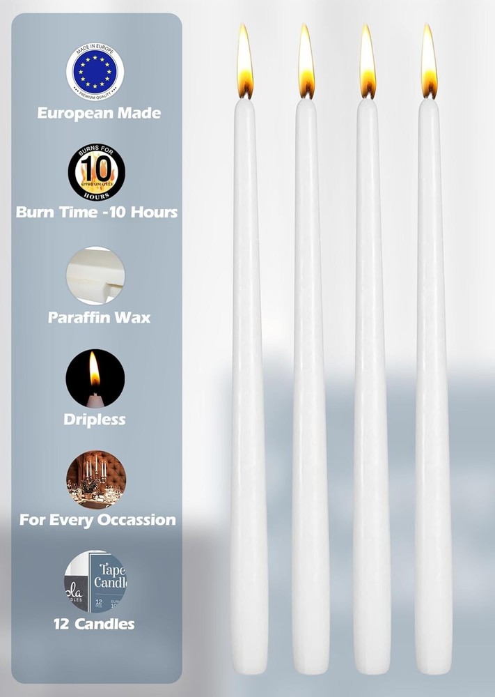 Stylish 12 Pack White Taper Candles - Perfect for Indoor & Outdoor Events ‹ › ‹ › ‹ › ‹ › ‹ › ‹ › ‹ › ‹ › ‹ › ‹ › Stylish 12 Pack White Taper Candles Perfect for Indoor & Outdoor Events Set the Mood Transform your space with these exquisite tall tapered candles. Their elegant design makes them suitable for restaurants, special events, and parties, effortlessly complementing nearly any decor. Crafted with Quality Imported from and made with 100% paraffin wax. Features pure cotton wicks for a clean burn. These high-quality candles do not drip or create a mess, ensuring your surfaces remain pristine. A Romantic Touch Enhance your romantic dinners with a candlelit ambiance. These taper candles fit most candlesticks and candelabras, making them perfect for both indoor and outdoor use. Create unforgettable moments with your loved ones. Ceremonial or Table Light These aroma-free Shabbat candles are ideal for weddings, holidays, and religious events. Perfect for use in synagogues and churches, they add a touch of elegance to any ceremony. Dripless Design Experience the magic of dripless candles! This innovative design combines a perfect blend of hard wax with a precisely sized wick, assuring a clean burn. For optimal performance, ensure that the candles are upright and shielded from drafts, which can cause the flame to flicker or generate undesired drips. Why Choose Our Taper Candles? Elevate your events with our stylish 12 pack of white taper candles. Not only do they provide splendid lighting, but their quality and design promise elegance and sophistication for any occasion—from intimate dinners to grand celebrations. Don’t miss your chance to create memorable atmospheres. Order your candles today! Shipping Free & Fast Shipping - We offer free shipping to most of the USA with a normal delivery time of 3-7 days. However, due to the current situation, additional delivery time (up to 3 weeks) may be required for some items. Alternative Carriers - We may use alternative carriers (e.g. USPS, FedEx, UPS, etc.) to ensure your package arrives safely and on time. Due to the use of multiple carriers, we are unable to provide a tracking number automatically. Handling Time - Orders are processed and shipped within 1-2 business days of receiving cleared payment. Shipping Restrictions - Shipping to Alaska, Hawaii, Puerto Rico, Guam, and other US territories may incur shipping charges or delivery restrictions. Please contact us before ordering, or your order can be refunded/cancelled. State Restrictions - There may be restrictions based on your state of purchase. For example, certain items may not be shipped to California due to state regulations. Contact for Tracking Updates - If you require tracking updates or have any concerns about the delivery of your order, please feel free to contact us, and we will be happy to assist you. Return 30-Day Hassle-Free Returns - We want you to be completely satisfied with your purchase. If you are not, you can return the item within 30 days of receiving it for a full refund or exchange. Easy Return Process - To start a return, simply contact us and we will provide you with a prepaid return shipping label and detailed instructions. Restocking Fee - There are no restocking fees for returns. However, the buyer is responsible for return shipping costs if the return is not due to a seller's error. Refund Processing Time - Refunds will be processed within 5 business days of receiving the returned item in its condition. Payment We accept all major credit cards, PayPal, and Apple Pay for your convenience. Your payment information is secure and encrypted to ensure a safe and seamless transaction. Please complete your payment within 3 days of purchase to avoid any delays in shipping. Feedback Your feedback is extremely important to us. We strive to provide the best products and customer service possible. If you are satisfied with your purchase, please take a moment to leave us a positive review. If you have any concerns or issues with your order, please contact us before leaving negative feedback. We are committed to resolving any problems and ensuring your satisfaction. Contact Us If you have any questions or concerns, please feel free to out to our customer support team. You can contact us through the eBay messaging system. We are available Monday to Friday, 9:00 am to 5:00 pm EST, and we will do our best to respond to your inquiry within 24 hours. Buy it now and enjoy a pleasant shopping experience! Unit Quantity: 12 Features: Dripless,Elegant design,Clean burning,No drip,Universal fit,Suitable for restaurants,Suitable for special events,Ideal for candlelit dinners,Aroma free,Perfect for religious events,Perfect for holidays,European made,Long burn time Theme: Taper Candles Material: Paraffin Wax,Cotton Wicks Room: Indoor,Outdoor Type: Taper/Dinner Candle Scent: Unscented Color: White Shape: Taper Size: Large Number in Pack: 12 Style: Classic Power Source: None Item Weight: 1.96 pounds Battery Type: No Battery Burning Time: 10 hours Unit Type: lb