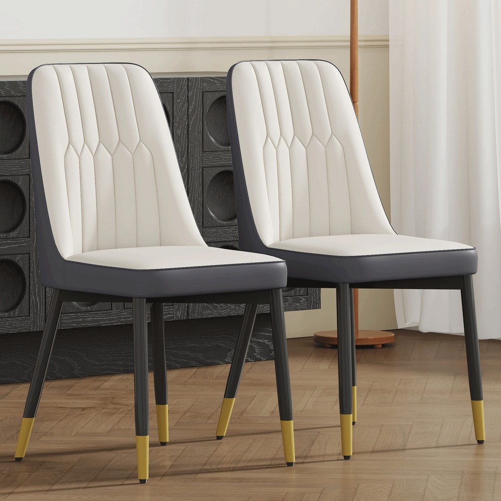 [Material and Filling]: The dining chair is made of PU material,White and dark gray splicing color, which has a soft touch and is filled with sponge, providing a comfortable sitting experience while also being easy to clean and maintain. [Backrest Design]: The backrest strap features a simple striped design, enhancing visual aesthetics. Filled with a modern atmosphere, simple yet fashionable, adding a unique charm to the home environment. [Chair Leg Design]: The black metal chair legs are paired with a gold spray decoration on the bottom, which is fashionable and stable. The black metal legs of the chair contrast sharply with the white and dark gray splic... Bathroom Elegant Dining Chairs Set of Two-piece Dining Chairs.Suitable for various places [Material and Filling]: The dining chair is made of PU material,White and dark gray splicing color, which has a soft touch and is filled with sponge, providing a comfortable sitting experience while also being easy to clean and maintain. [Backrest Design]: The backrest strap features a simple striped design, enhancing visual aesthetics. Filled with a modern atmosphere, simple yet fashionable, adding a unique charm to the home environment. [Chair Leg Design]: The black metal chair legs are paired with a gold spray decoration on the bottom, which is fashionable and stable. The black metal legs of the chair contrast sharply with the white and dark gray splicing color material, showcasing a noble and elegant temperament. [Anti slip feet]: Equipped with anti slip feet to ensure safety and stability during use. [Multiple specifications and colors]: In addition to the two-piece set, there are also four pieces per box available for selection. In addition, there are multiple colors available for the same product, all of which can be sold separately to meet personalized needs. [Applicable scenarios]: Suitable for various places such as restaurants, kitchens, living rooms, offices, etc. It can blend well into different indoor environments and add overall beauty to the space. [Weight bearing and installation]: The chair can bear a maximum weight of 260 pounds, designed ergonomically, easy to install, and does not require professional tools. It can be completed in about 15 minutes. [Color Tip]: Due to the influence of monitor parameters and lighting, the actual color of the product may differ from the picture. Please refer to the actual product color. Item Specifics Brand Unbranded Type Seating Color White,gray Material PU Item Length 17 Item Width 21.6 Item Height 35 Item Weight 15.32 Payment If you do not have a PayPal account, to get started and buy your first item with us is very easy. Simply click on the 'Buy It Now' button and follow the eBay checkout steps. Select PayPal as the payment method you then will be given the chance to enter your card details in to PayPal's secure checkout in order to pay for your order. Shipping 1. Your purchase is shipped directly to you as soon as we have received your cleared payment. 2. Normally all of parcels would be shipped within 3days(From Monday to Saturday). 3. We will send information on eBay or email if the parcel was delayed due to our holiday. 4. We provide three kinds of shipping for choice. Shipping way depend on delivery address. Returns If an unit is received defective, of course we take it back or replace it. If the unit is received as expected, we must charge for our expenses if you want to send it back. We have to charge for the work of handling, retesting and restocking. Contact Us Dear buyer, Thank you for visiting my store! Our warehouses are located in many regions around the United States. According to the customer's delivery address. Use USPS/UPS/DHL logistics transportation service. Prioritize the best quality logistics solutions to transport packages. Ensure package delivery time, At the same time. Have any after-sales problems, Feel free to contact us. At your service Bathroom DESCRIPTION PAYMENT SHIPPING RETURN POLICY CONTACT US Elegant Dining Chairs Set of Two-piece Dining Chairs.Suitable for various places [Material and Filling]: The dining chair is made of PU material,White and dark gray splicing color, which has a soft touch and is filled with sponge, providing a comfortable sitting experience while also being easy to clean and maintain. [Backrest Design]: The backrest strap features a simple striped design, enhancing visual aesthetics. Filled with a modern atmosphere, simple yet fashionable, adding a unique charm to the home environment. [Chair Leg Design]: The black metal chair legs are paired with a gold spray decoration on the bottom, which is fashionable and stable. The black metal legs of the chair contrast sharply with the white and dark gray splicing color material, showcasing a noble and elegant temperament. [Anti slip feet]: Equipped with anti slip feet to ensure safety and stability during use. [Multiple specifications and colors]: In addition to the two-piece set, there are also four pieces per box available for selection. In addition, there are multiple colors available for the same product, all of which can be sold separately to meet personalized needs. [Applicable scenarios]: Suitable for various places such as restaurants, kitchens, living rooms, offices, etc. It can blend well into different indoor environments and add overall beauty to the space. [Weight bearing and installation]: The chair can bear a maximum weight of 260 pounds, designed ergonomically, easy to install, and does not require professional tools. It can be completed in about 15 minutes. [Color Tip]: Due to the influence of monitor parameters and lighting, the actual color of the product may differ from the picture. Please refer to the actual product color. Item Specifics Brand : Unbranded Type : Seating Color : White,gray Material : PU Item Length : 17 Item Width : 21.6 Item Height : 35 Item Weight : 15.32 Payment Shipping Returns Contact Us If you do not have a PayPal account, to get started and buy your 