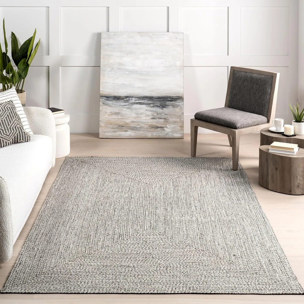 Stylish 4-Foot Round Indoor Outdoor Rug in Wynn Salt Pepper Kid Pet Friendly