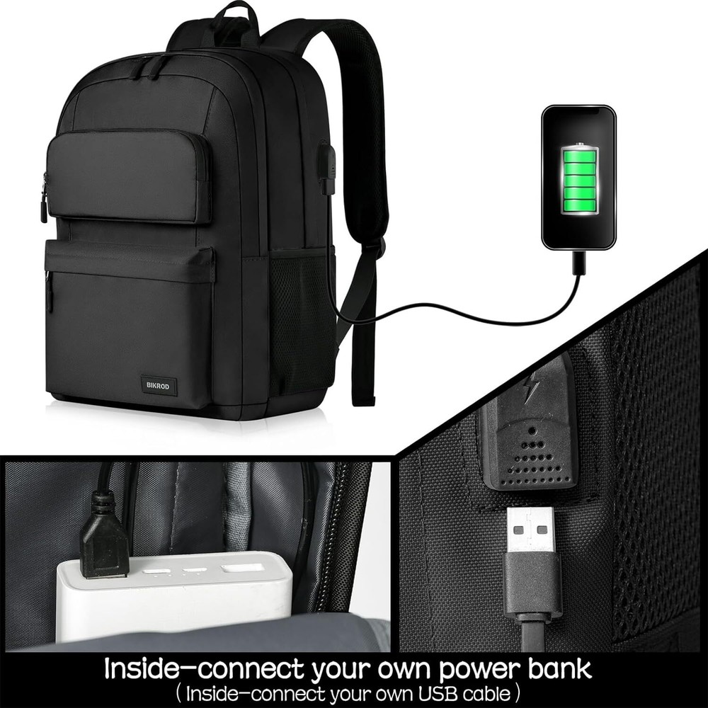 Backpack for School Teen Boys and Girls, 15.6 Inch, Black Product Details Product Dimensions: 8 x 12 x 18 inches Item Weight: 1.48 pounds Department: unisex-adult Age Range Description: 3 years old and above Number Of Items: 1 Capacity Total: 28 Liters 【Comfort and Sturdy】The backpack OUTSIZE is 18.5*12.6*9 inches, 33L. BIKROD laptop backpack is made of high quality water-resistant, sturdy fabric provides a sturdy and chic exterior. Comfortable airflow back design with foam, gives you maximum back support. Breathable and adjustable shoulder straps relieve the stress of shoulder.Ensure a secure & long-lasting usage everyday & weekend. 【Classic Design】Main compartment with 15.6” laptop pocket and an extra padded sleeve for tablets or Kindle, can storage books and business files while still having room for daily necessities, front compartment with organizer and 2 front pockets provide plenty of capacity for the organization. 2 elastic side pockets can fit different size of bottles. 【Multi Function】BIKROD Laptop backpacks with a built-in USB charging port, easy to charge your phone when on-the-go (Not includes the power bank). With a luggage belt on the back panel, it is easy to put on the luggage handle when travel. One hidden anti-theft pocket to protect your important items. 【Great Gift】This water resistant laptop backpack will be a perfect backpack for College. Also as a casual travel backpack for travel, work backpack for business. A good gift choice for men and women, present for christmas. ★Age: suitable over 3 years old.Serve you well as professional office work backpack, slim USB charging backpack, perfects for business traveling, weekend getaways, shopping & outdoor activities in daily life, making your journey and travelling more convenient wherever you go. Specifications: Style: Classic Capacity: 28 L Dimensions: 18.5" x 12" x 9" / 46 x 32 x 23 cm Laptop Dimensions: 16"and below Features: Ergonomic S-curve shoulder straps Front utility pocket with organizer Fully padded back panel Pleated front stash pocket Side water bottle pocket Two large main compartments Web haul handle Dedicated 15.6" padded laptop compartment Zippered front stash pocket All of our bags come with a lifetime promise. Because good stuff should last. If one of our bags breaks, we’ll replace it or fix it. No questions asked.