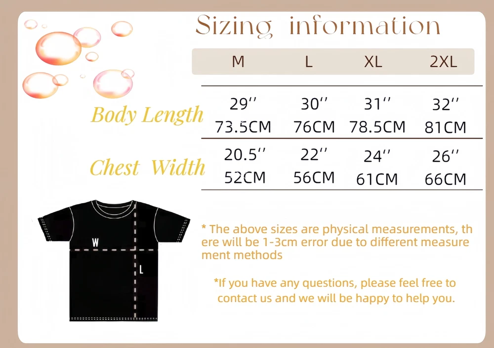 Cotton T-shirt is a type of T-shirt that has the advantages of breathability, sotness, comfot, coolness,sweat absorption, and heat dissipationIt is made from natural cotton, which is a very common plant fiber known for its excellent breathability and moisture absorption.Pure cottonT-shirts are not only suitable for dally casual wear, but can also be paired with different clothing to create a variety ofstyles, suitable for travein various occasions GusseaK Material: 100% cotton Collar:Regular crew neck with short sleeves Washing: Avoid using strong detergents to avoid affecting the texture and color of the clothesz .Suitable for sports party festivals Note: Please refer to our detailed size chart before you buy We try our very best to make sure every customer is completely satisfied. f there's a problem, message us! We're happy to helD.CAREINSTRUCTlONs: Please check size details in product description.lurmn garment inside out and wash cold /tumble dry on low temperatureseting/do not bleach directly ontheprint.