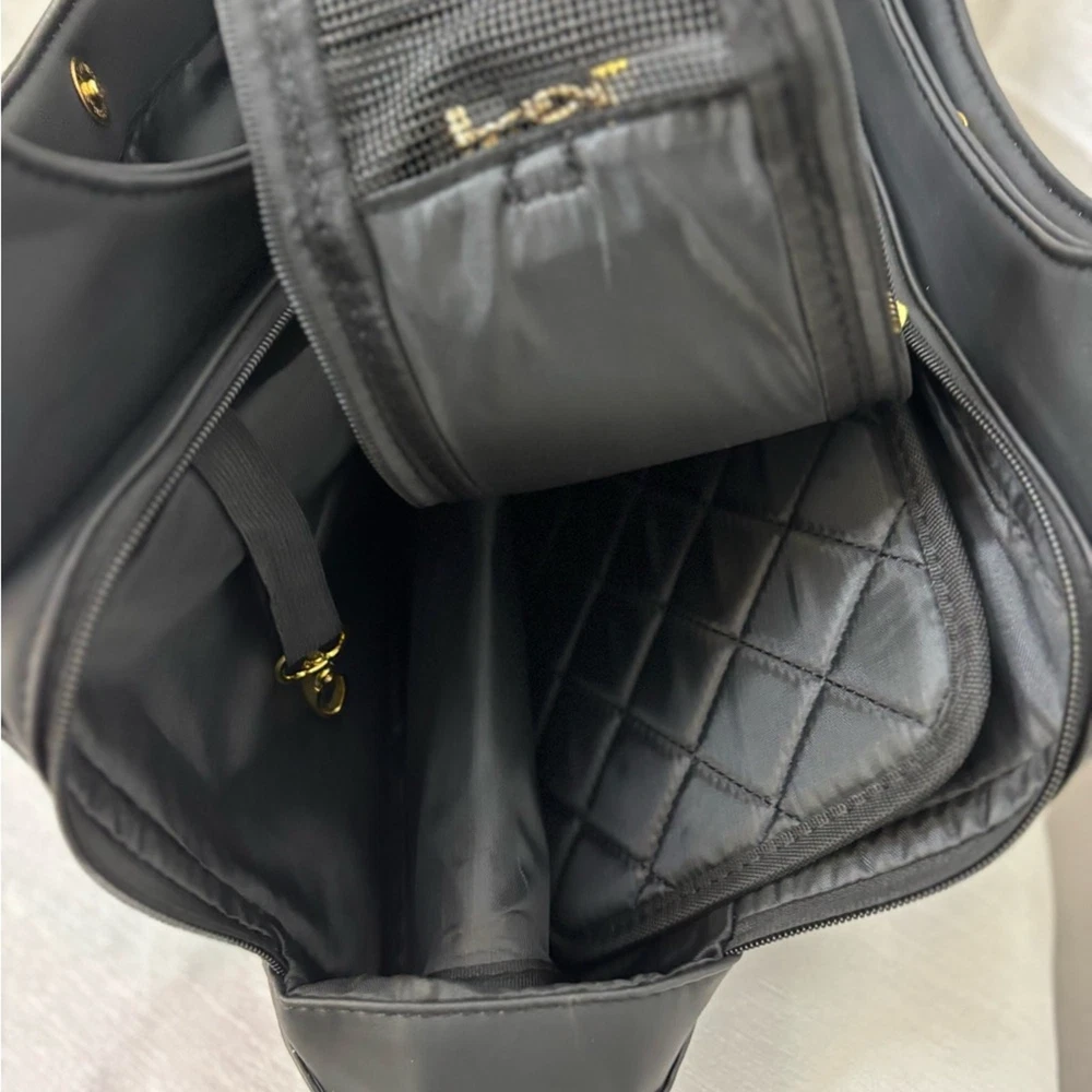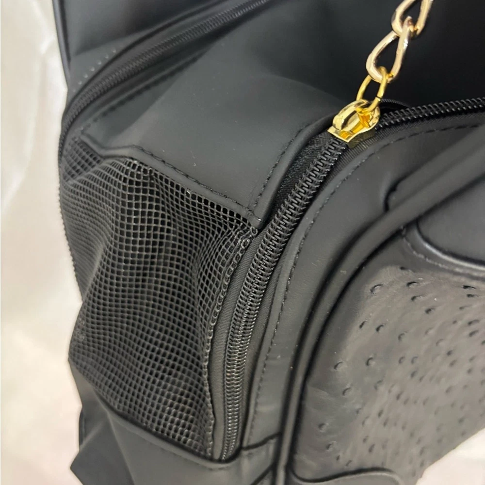 This elegant black pet carrier handbag is perfect for any occasion. Its sleek design and versatile color make it a must-have accessory. Brand New