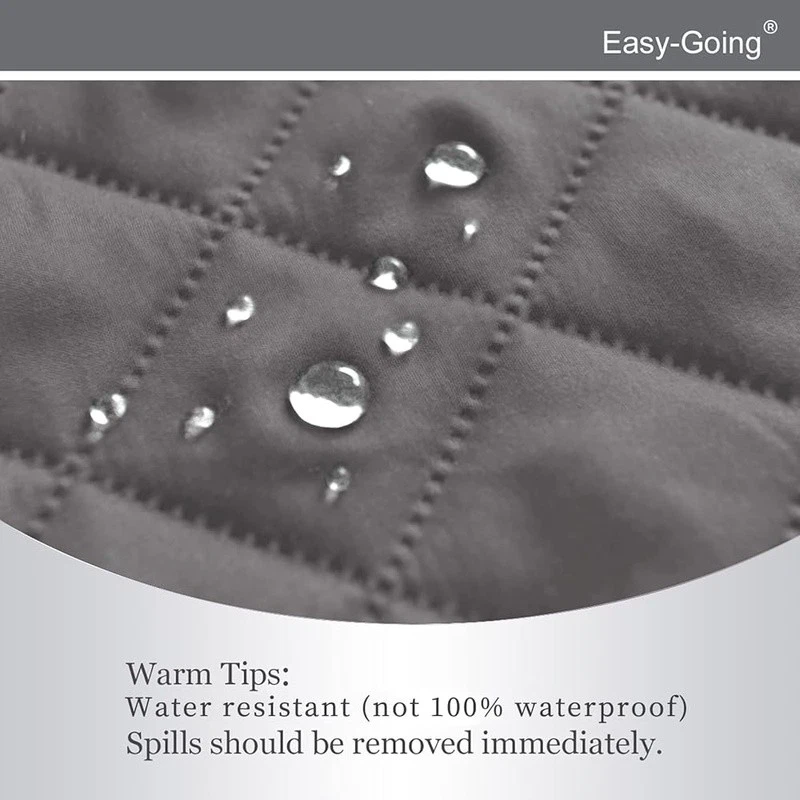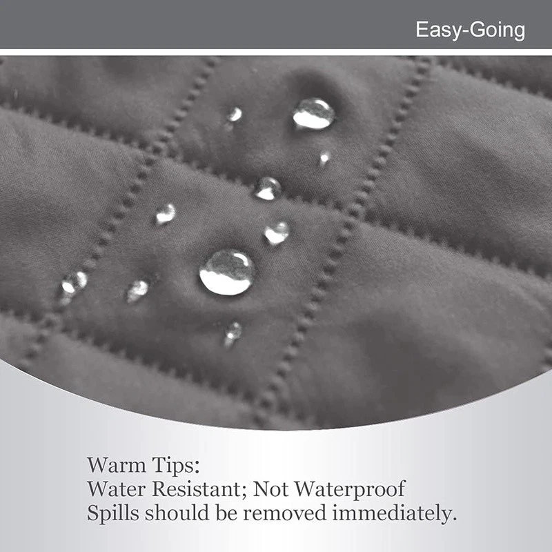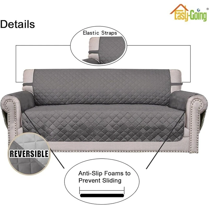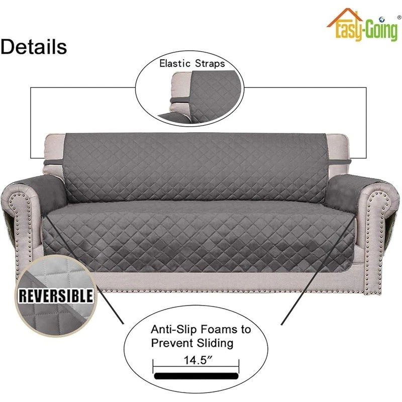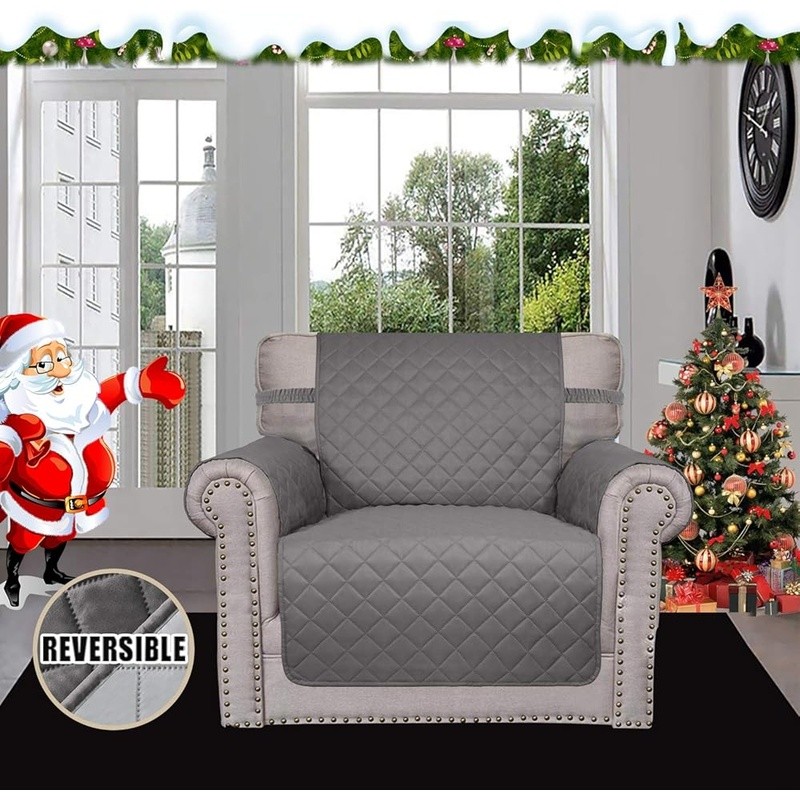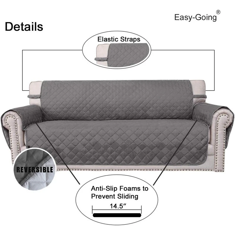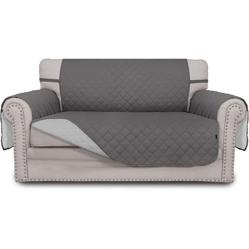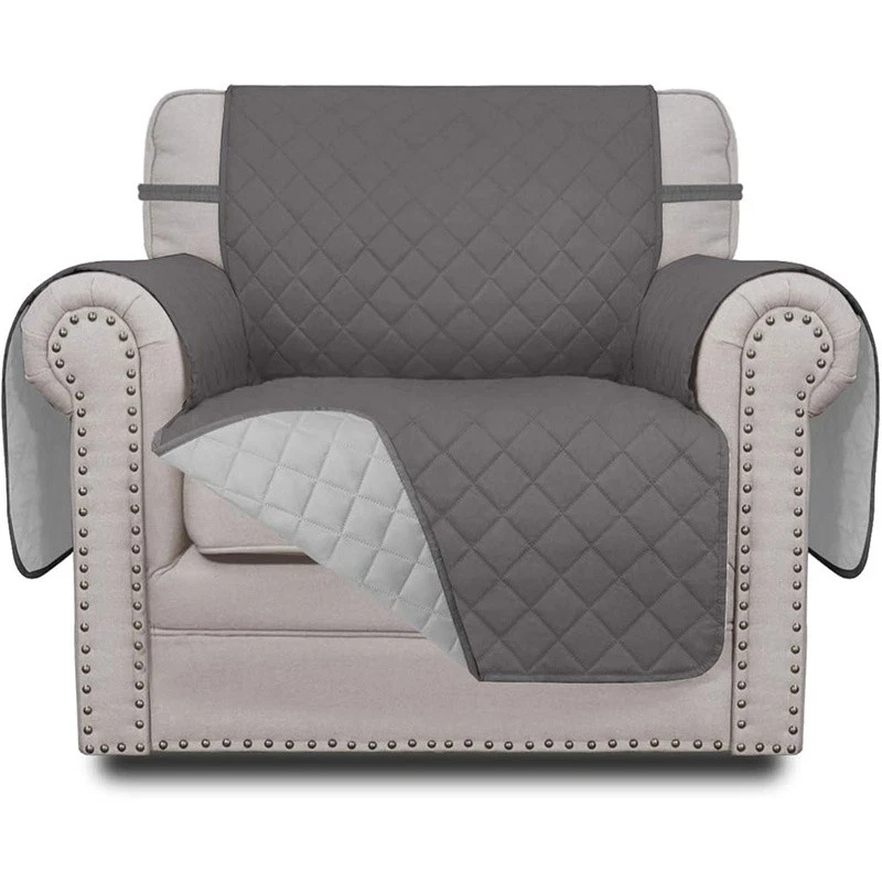 About this item HIGH QUALITY: Super durable 3-layers quilted fabric, elegant quilted texture, thick microfiber, colorfast, water resistant. Two color options. Double the use. DIMENSIONS: Chair Cover: Fit seat width up to 25 in, please measure before purchasing, see measuring guide in photos. PREVENT SLIDING/EASY TO INSTALL: Just drape it on, tuck any extra fabric into the gap/crease. Two foam pipes, which tucked into the grooves on two sides to stay in place better. The back of the sofa is fitted with elastic. FURNITURE PROTECTOR: Protect your furniture from daily wear and tear, spills and stains. It's a great choice for homes with children and pets. EASY CARE: Machine washable, wash at temperature around 30 degrees celsius, mild laundry detergents are advised, please do not bleach. Product Dimensions: 10.98"D x 12.01"W x 4.09"H Color: Gray/Light Gray Recommended Uses For Product: Sofa Special Feature: Resistant Material: Microfiber