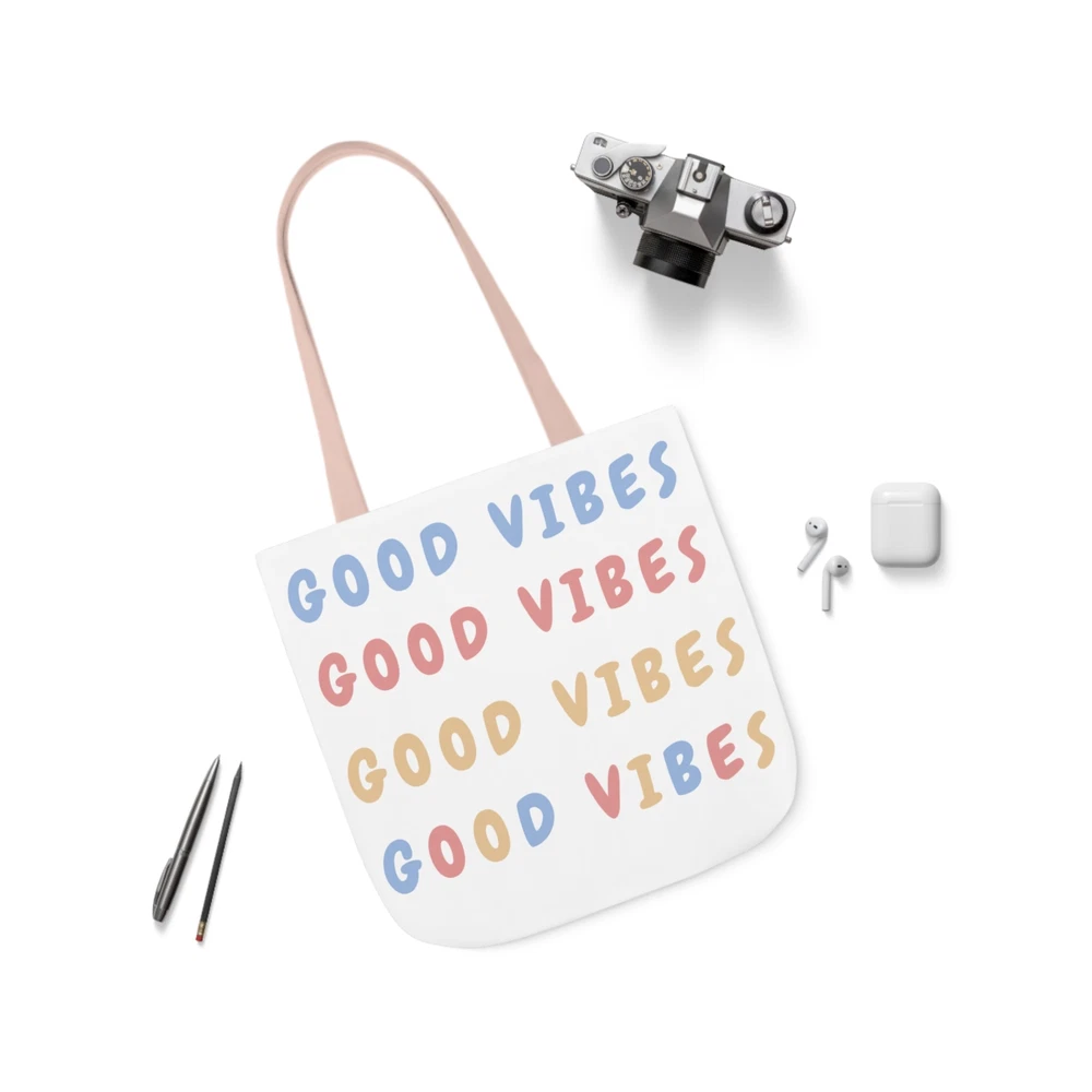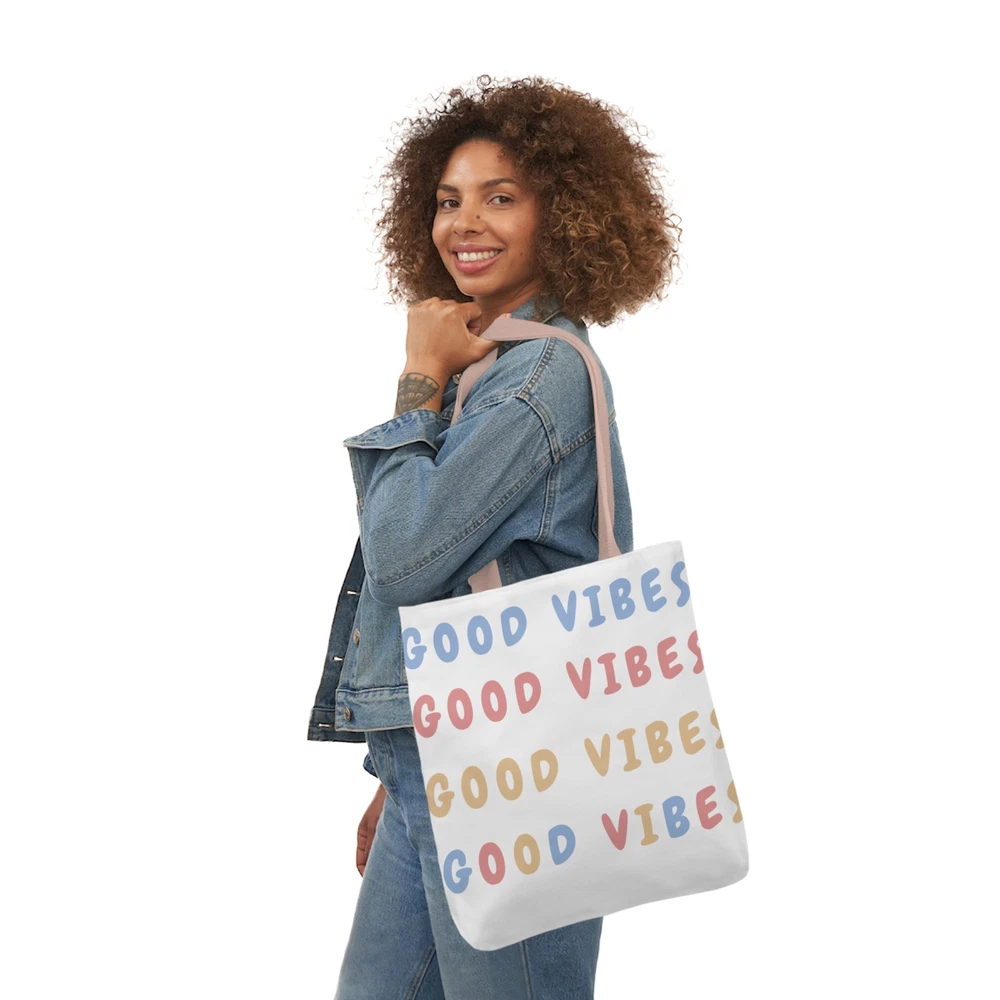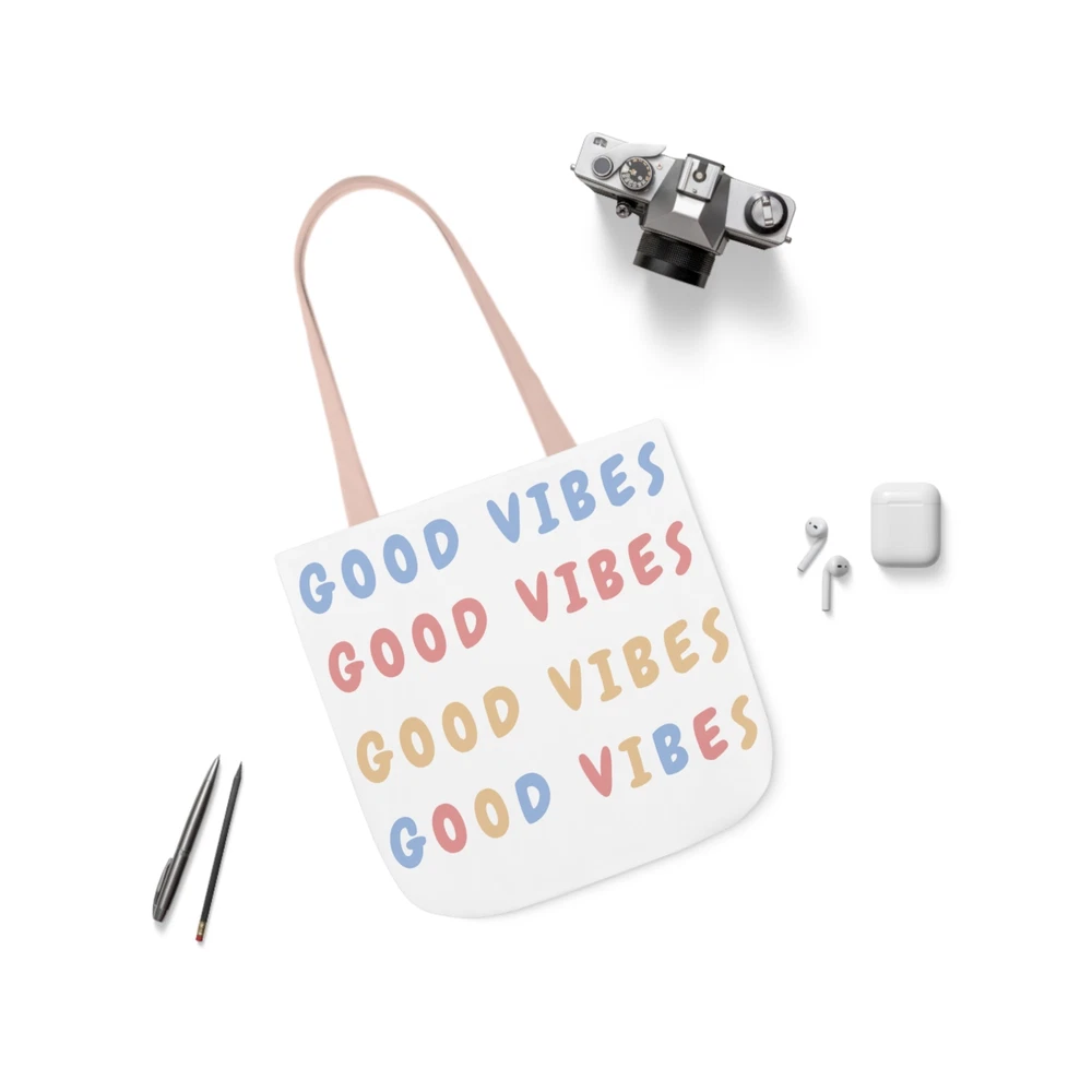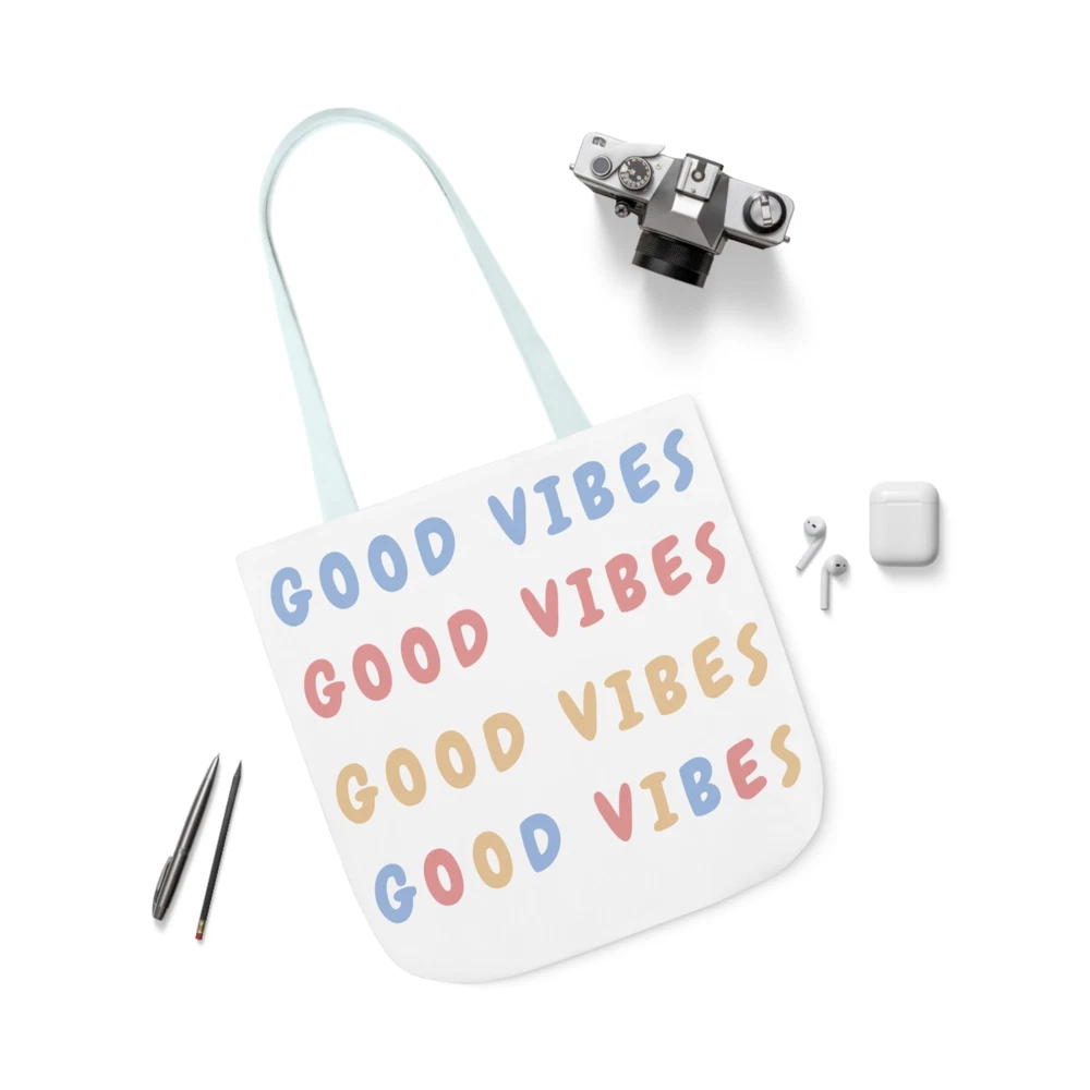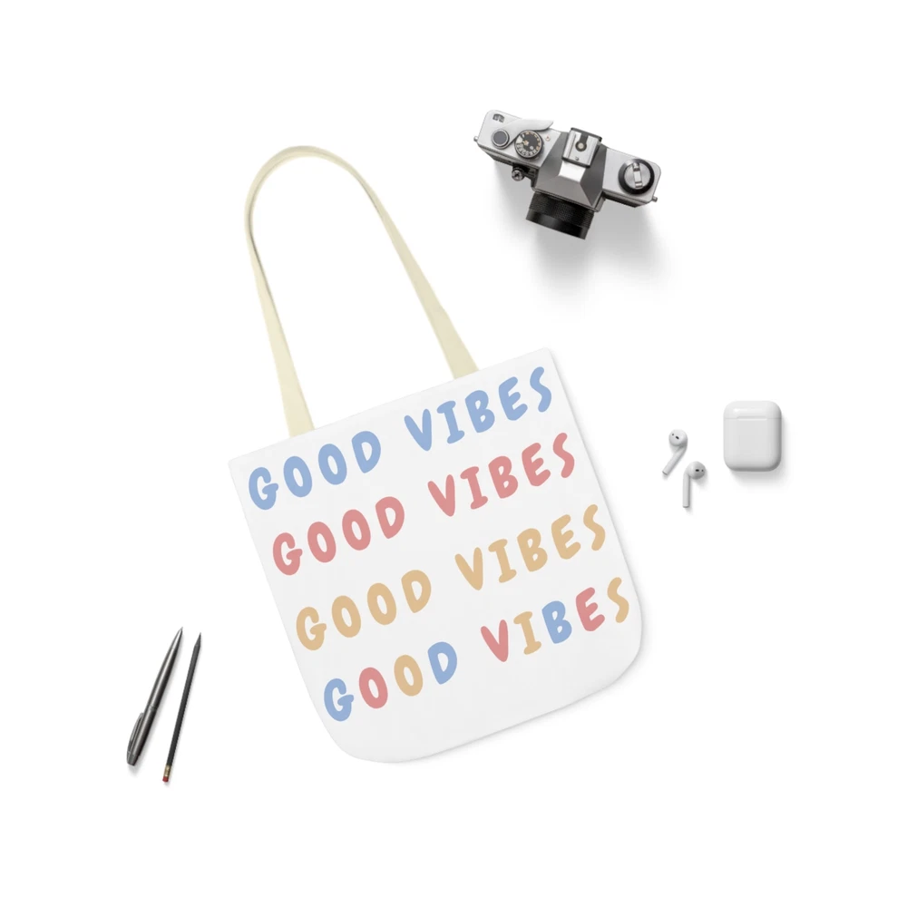 Lightweight, durable, and ideal for printing your artwork in picture-perfect quality—this polyester canvas tote bag does it all. The inside has a sleek, black lining and its comfortable straps come in five beautiful colors. Choose any (or all) of the three sizes—for quick errands, shopping trips, and longer travels. .: 100% Polyester canvas .: Available in 3 sizes .: Black interior .: 5 different strap color options .: All over print