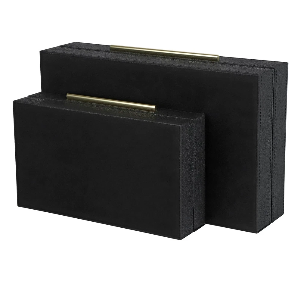 Love these nesting boxes—sleek faux leather with a sturdy wooden frame makes them both stylish and durable. Perfect for organizing jewelry, trinkets, or keepsakes, and the hinged lid keeps everything secure. The compartments help keep things tidy, and the neutral design fits any decor. Great value for a set of two!