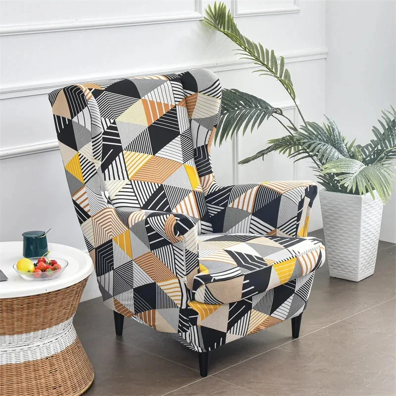Features: MATERIAL - Wing chair cover is made of high stretch polyester and spandex printed fabric, breathable and comfort while you seat and ensuring good function as well. PROTECT & USAGE - Not only will our wing back arm chair cover protect your wing chair from accidental dirt like biscuit crumbs and daily wear and tear, but it is also a great choice for homes with children and pets. HOME DECOR - The beautiful chair cover save you money by extending the life of your sofa. Elegant pattern gives your chair a new look. EASY TO INSTALL & CARE - easy on and easy off. Machine washable, separately in cold water on the gentle cycle, do not use bleach. NOTE - Please measure your wing chair in advance and compare it to our size. Package include: Wing chair cover*1SET(Wing chair cover*1pc, Cushion cover*1pc)or Footstool Cover*1pc