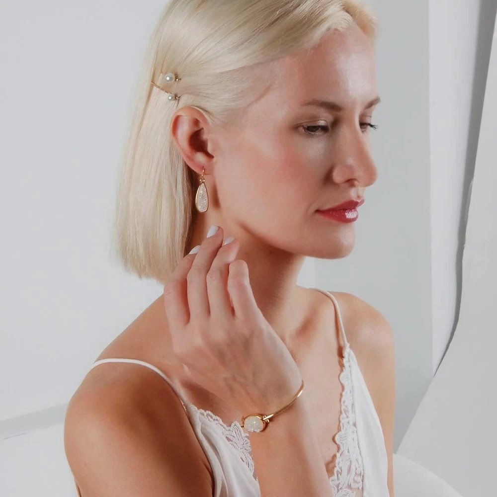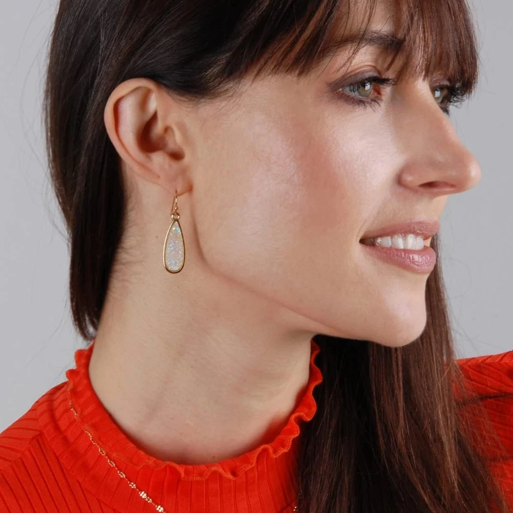 Stylish Gold White Opal Teardrop Dangle Earrings for Women - Humble Chic Design