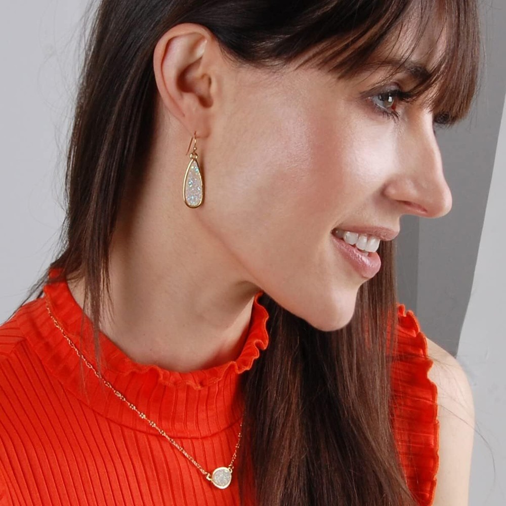 Humble Chic Teardrop Dangle Earrings for Women with Gold - White Created Opal Product Details Brand, Seller, or Collection Name: Humble Chic NY Metal stamp: Not stamped Metal: gold-plated-brass Material: Metal Gem Type: No Gemstone Setting: Bezel Length: 1.5 inches Back finding: French Wire Number of stones: 2 Package Dimensions : 3 x 3 x 0.7 inches Department : womens Manufacturer : Humble Chic NY