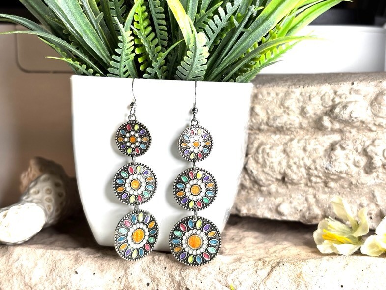These Bohemian-themed earrings are designed to add a stylish touch to any outfit.