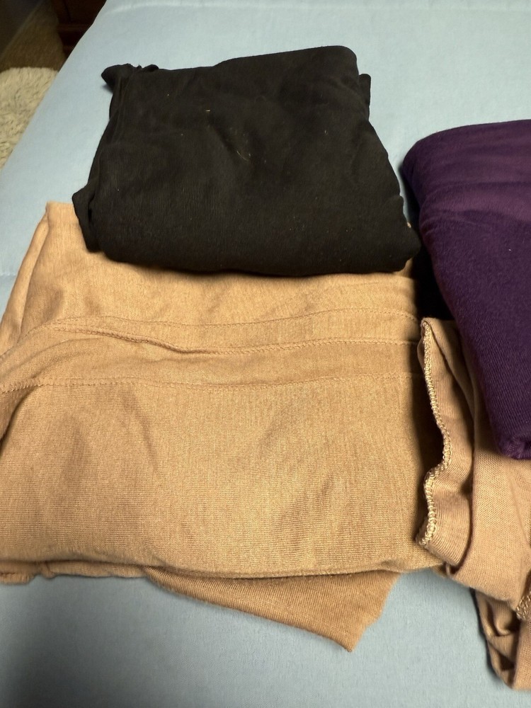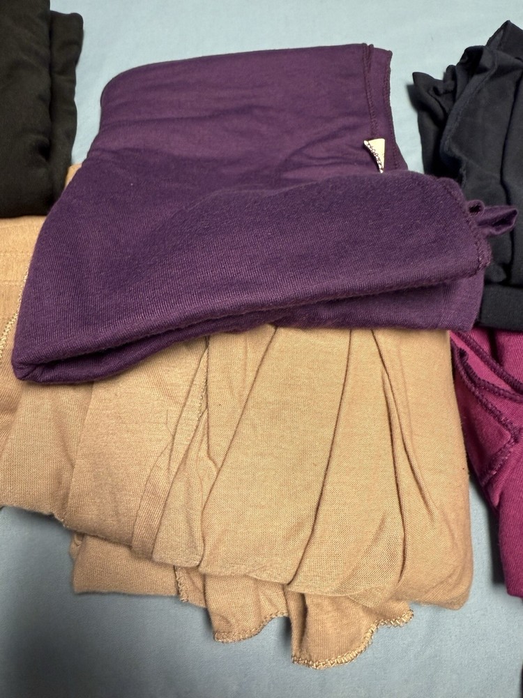 6 head wraps/scarves. Some have never been worn. Some were worn multiple times. 2 tan, 2 shades of purple, 1 navy blue, 1 black. Can be sold separately if requested.