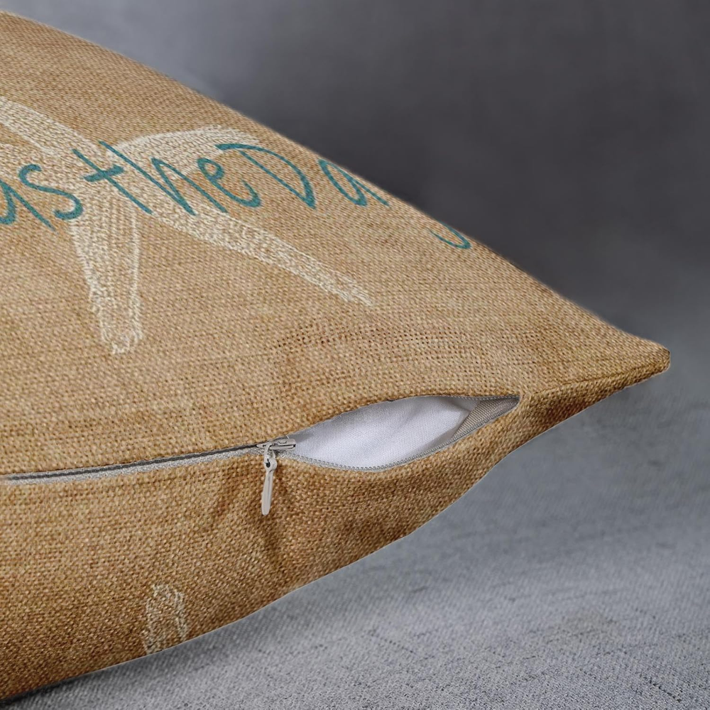 Polyester A white starfish pattern is printed on one side with beach in the background and match with Seas the Day,give pillowcases a perfect summer style, add warmth to your home, and leave a good impression on every visitor. Size:20x 26 inches ,the insert is not include. Material: Single side printing,High-quality breathable linen, hand-made, and tightly woven, make your head soft and comfortable. The high-quality invisible zipper design meets the elegant appearance of these pillowcases. Use of: You can decorate your sofa, bench, bedroom, living room, car, study and any place you want to decorate. Cleaning instructions: machine washable and hand wash in cold water, please dry at low temperature, not bleach. Product Description Super Soft Emvency brings luxury and high quality home decor products to your daily life. Velvet cushion cover can not only protect your expensive pillow inserts, but also mix and match with your other pillows and furniture to fresh up your home. By decorating your home with these covers, you will have a cozy living place and also will receive a lot of compliments from your families and friends. INVISIBLE ZIPPER 1.The pillow cover is made of high-quality breathable linen, durable and very comfortable. Both sides have the same design. COMFORTABLE MATERIAL 2. This cushion cover has an invisible zipper which improves the appearance and provides easy insertion and removal. EASY CARE & WASH 3.Machine wash in cold water alone, only gentle cycle, no bleaching, tumble drying, our pillowcases are mixed with anti-fading and anti-staining, and look always new after each wash. HOW TO CREATE PLUMP PILLOW? Step1: Open up the package , then you need to fold the insert when you put pillow into the cover. Step2: After part of your folded pillow is stuffed in the cover, you should put the left part of the pillow slowly to reduce the risk of zipper split. Step3: Then you can tide up the corner of the pillow. Finally zip up the cover.