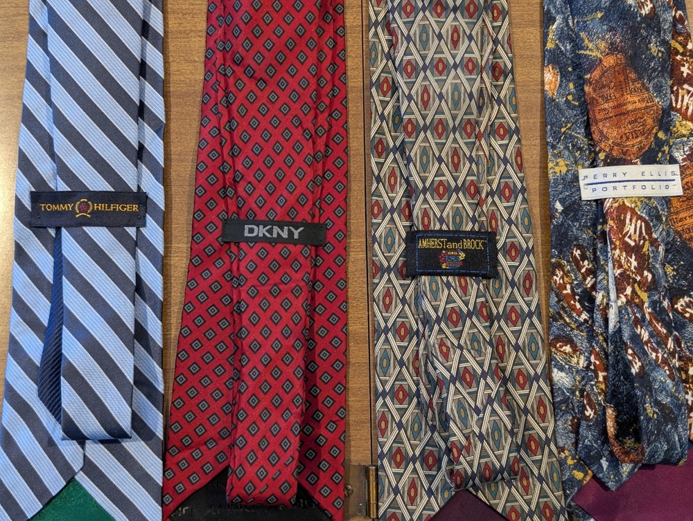 Add a touch of sophistication to your wardrobe with this collection of men's designer neckties. Featuring notable brands such as DKNY, Perry Ellis, Tommy Hilfiger, Amherst, and Brock, these ties are perfect for any occasion. Made from 100% silk, right here in the USA!!! These ties are sure to impress. The classic widths are perfect for a timeless look, and the varying patterns and colors allow you to express your unique personality. Elevate your outfit with one of these elegant men's designer ties.