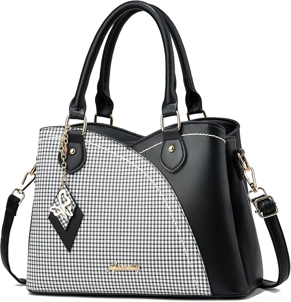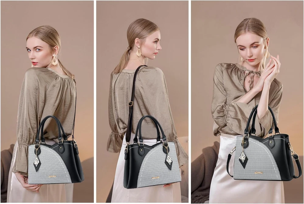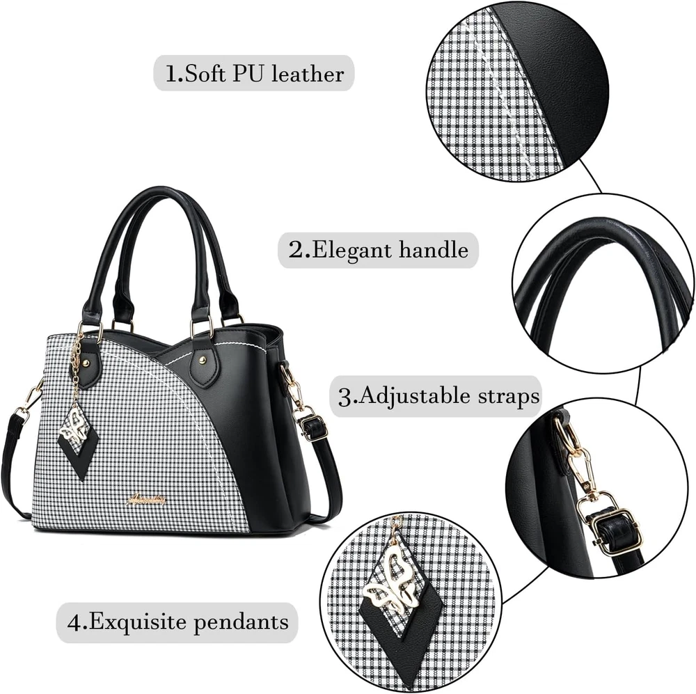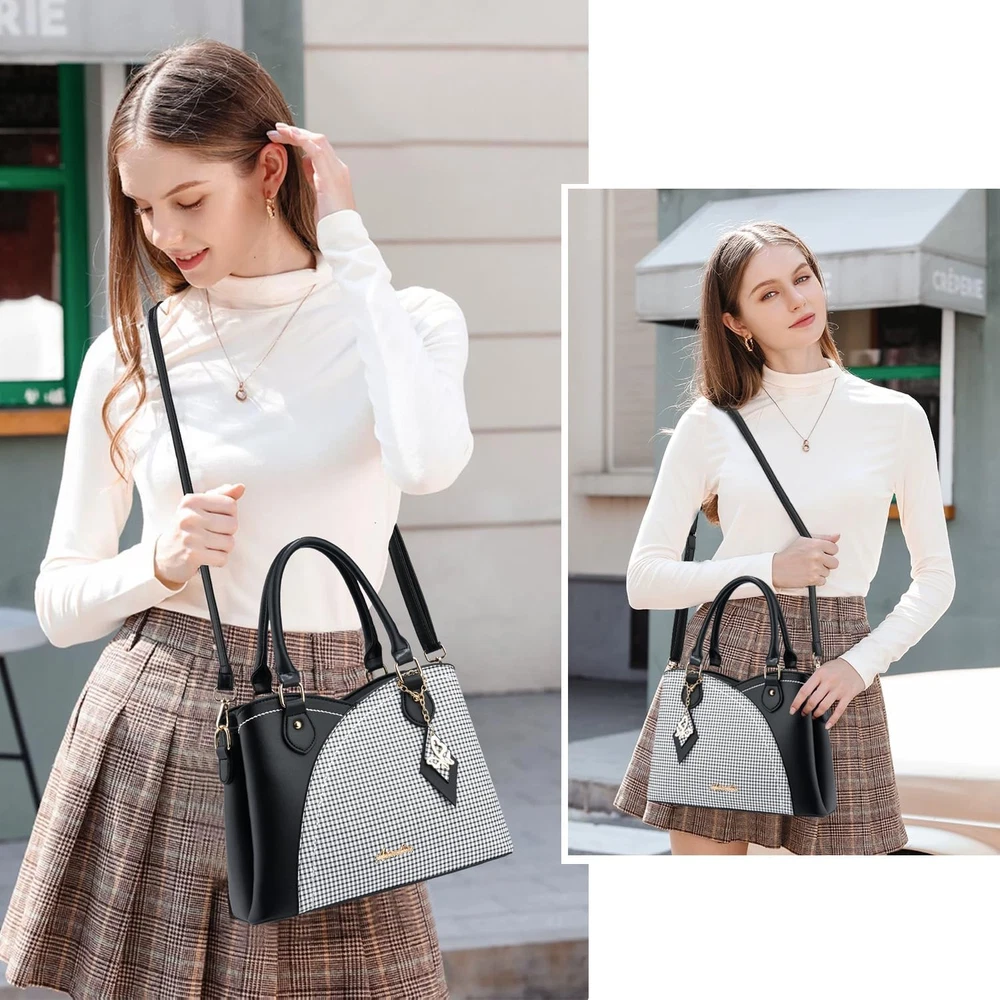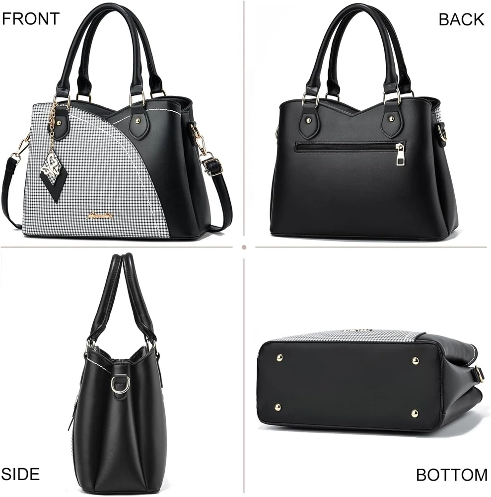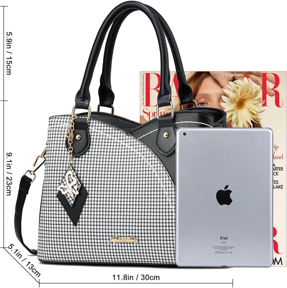 Different Ways to Carry:Tote Bag for Women, Purses for Women, Handbags for Women, Satchel Bags for Women, Crossbody Bags for Women, Shoulder Bags for Women. Perfect for Dating, Shopping, Working, Traveling, Party and Other Occasions. Synthetic Material:Purse with Top Zipper Closure,Made of Quality Durable Soft Synthetic Leather (no animals harmed and no strong chemical odor) with Gold Tone Hardware and Unique Pendant Make the Tote Bag More Elegant. Multi Pockets: 3 Main Compartments with 1 Interior Zippered Pockets and 2 Open Pockets, 1 Exterior Back Pocket.The Satchel Handbag for Women Effortlessly Accommodates Your Daily Essentials— IPad Mini, Phone, Wallet ,Cosmetic and Other Daily Stuffs. Dimension: This Trendy Satchel Bag Measures 11.81"L * 5.12"D * 8.27"H. Top Handle Drop Length 5.8". Crossbody Purses for Women Come with a Adjustable and Removable Shoulder Strap. Ideal Gift Choice: Women's Purse Can be Matched with Various Styles of Clothes, Suitable for All Stylish Ladies.It is A Nice Gift on Thanksgiving Day, Christmas Day, New Year, Birthday, Valentine's Day, Mother's Day, or Any Other Holidays or Anniversaries.