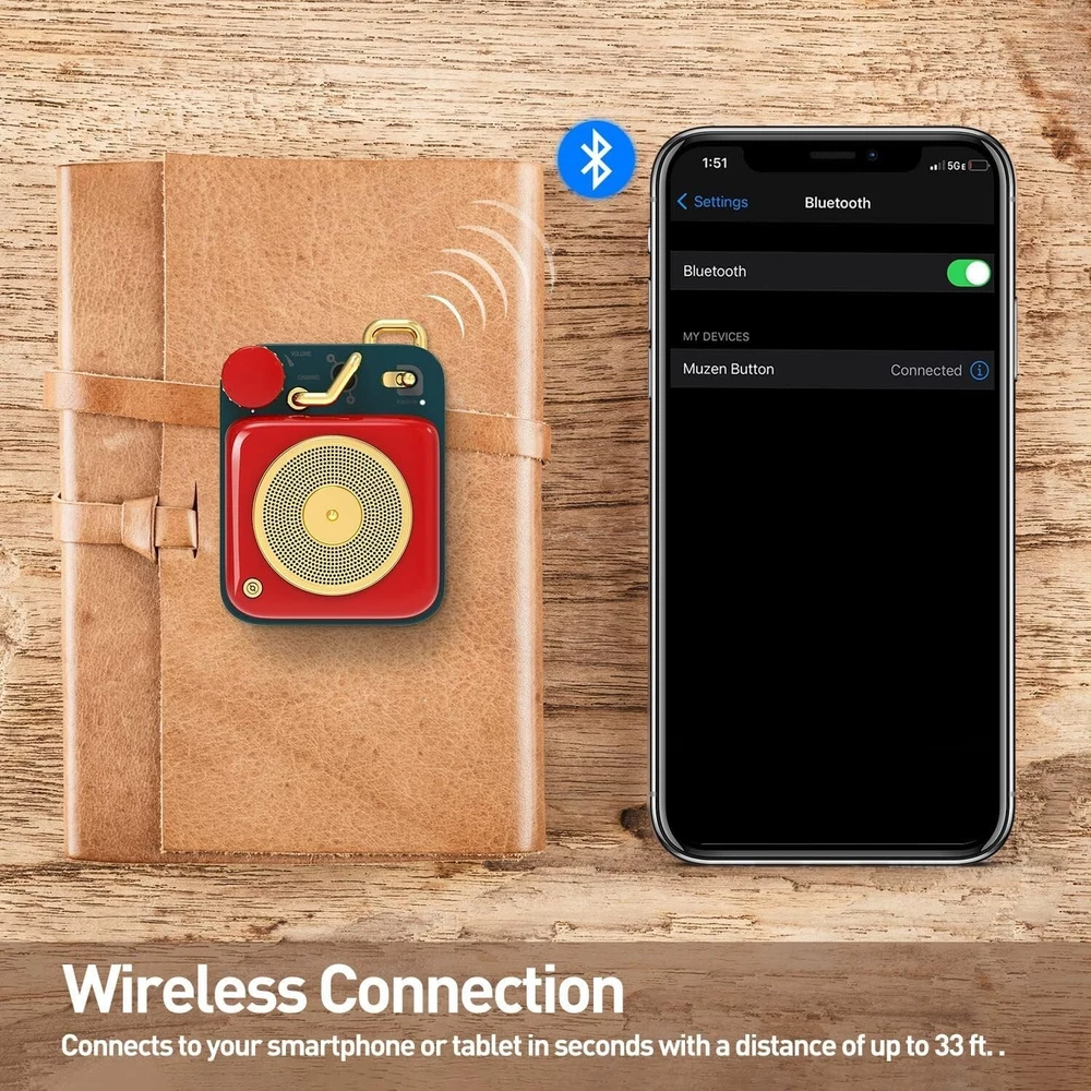 Stylish Retro Mini Bluetooth Speaker with Long Battery Life and Lanyard