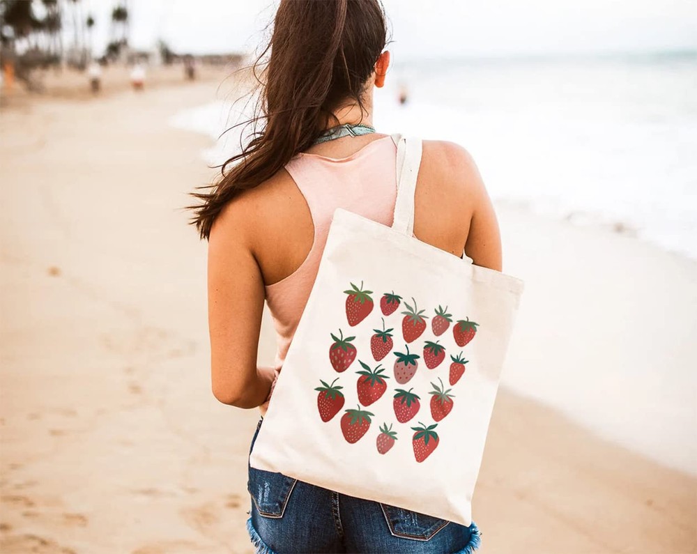 HomeStylish Strawberry Print Reusable Tote Bag for Women Grocery Shopping