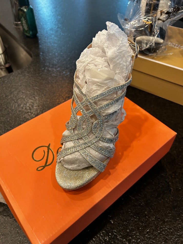 Upper Material:SyntheticType:HeelColor:SilverDepartment:WomenStyle:PlatformUS Shoe Size:8Brand:HIGHSeller Notes:“Wore once for wedding. Still have box and packaging.”