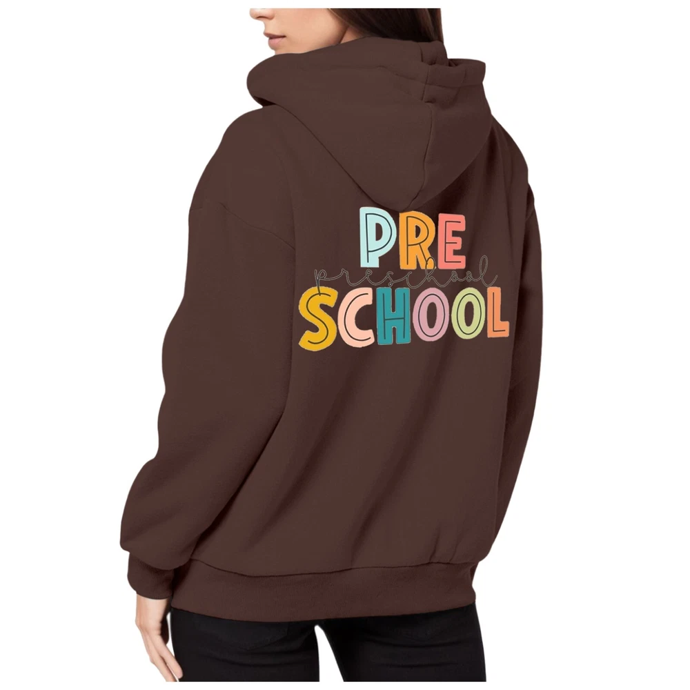 Women's Back To School Day Back To School Season Printed Long Sleeve Zipper Sweatshirt Hoodie Hoodie Hoodie Hoodie Features: Material:women's fashion hoodies & sweatshirts is made with high-quality fabric, breathable, lightweight, soft, friendly to skin. Occasion : sweatshirts for women/ pullover perfect for casual, daily wear,office, party, school, running, sport, gym, dancing, skating, hiking, biking, yoga, spring, fall and winter daily to wear. Pull On closure Machine or Hand Wash What you get : 1 x Sweatshirt Product Description: Women's Back To School Day Back To School Season Printed Long Sleeve Zipper Sweatshirt Hoodie Hoodie Hoodie Hoodie Material: Polyester Color: as the picture shows, (Due to the difference between different monitors, the picture may have slight color difference. please make sure you do not mind before ordering, Thank you!) Package weight: 505g Package size: 35x35x2cm,(Please allow 1-3mm error due to manual measurement. please make sure you do not mind before ordering.) Size Bust Shoulder Sleeve Length S 102cm/40.16'' 56cm/22.05'' 49cm/19.29'' 71cm/27.95'' M 108cm/42.52'' 58cm/22.83'' 50cm/19.69'' 72cm/28.35'' L 114cm/44.88'' 60cm/23.62'' 51cm/20.08'' 73cm/28.74'' XL 120cm/47.24'' 62cm/24.41'' 52cm/20.47'' 74cm/29.13'' XXL 126cm/49.61'' 64cm/25.20'' 53cm/20.87'' 75cm/29.53'' XXXL 132cm/51.97'' 66cm/25.98'' 54cm/21.26'' 77cm/30.31'' Size:S Bust:102cm/40.16'' Shoulder:56cm/22.05'' Sleeve:49cm/19.29'' Length:71cm/27.95'' Size:M Bust:108cm/42.52'' Shoulder:58cm/22.83'' Sleeve:50cm/19.69'' Length:72cm/28.35'' Size:L Bust:114cm/44.88'' Shoulder:60cm/23.62'' Sleeve:51cm/20.08'' Length:73cm/28.74'' Size:XL Bust:120cm/47.24'' Shoulder:62cm/24.41'' Sleeve:52cm/20.47'' Length:74cm/29.13'' Size:XXL Bust:126cm/49.61'' Shoulder:64cm/25.20'' Sleeve:53cm/20.87'' Length:75cm/29.53'' Size:XXXL Bust:132cm/51.97'' Shoulder:66cm/25.98'' Sleeve:54cm/21.26'' Length:77cm/30.31''