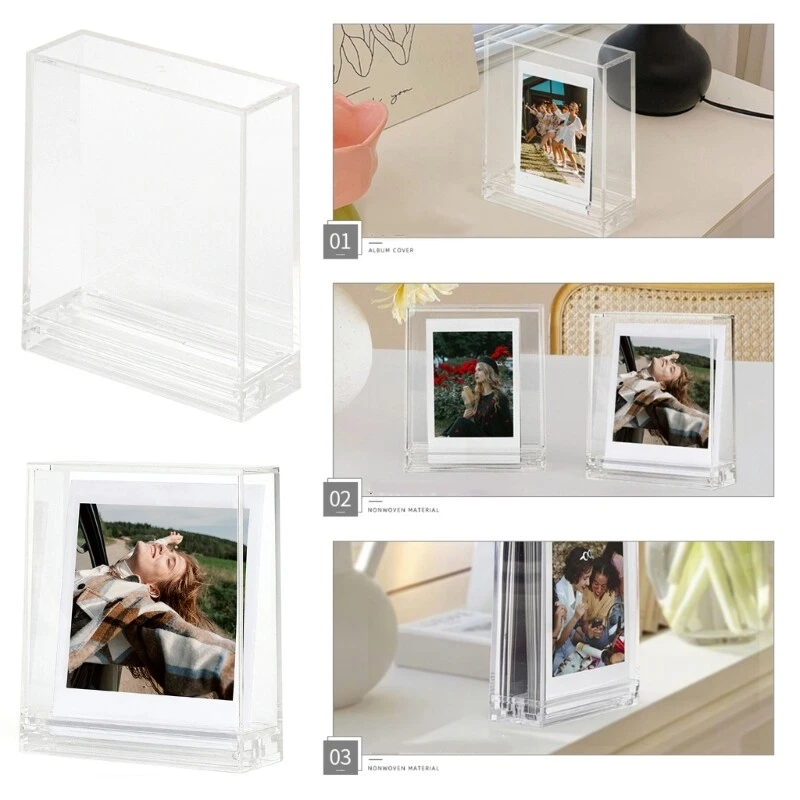Stylish and Elegant Double sided Acrylic Photo Frame for 3 inch/SQ Photos Features: This double sided photo frame stand features modern and minimalists styles, allowing you to showcase your favorite photos The clear designs of this frame offer a unique way to display two photos simultaneously, creating eye catching visual effect. It is a practical solution for organizing and storing your pictures. Photography enthusiasts will appreciate this photo frame designed specifically for 3inch or square photos. It ensures fits and presents your pictures in the best possible way. Place this versatile photo frame on any surface in your home, such as a desk or shelf, to add elegant and personalize your space. Whether as a thoughtful or for use in exhibitions, this photo frame allows you to display your photos with creativity and styles. It is suitable for individuals who want to showcase their memory a unique and manner. Specifications: PC Color:Clear Size:Approx.9.5x8x3cm/3.74x3.15x1.18in Suitable for 3inch/SQ Pictures ,Store 20pcs 3inch Photos; Package Includes: 1xPhoto Frame note: Please allow 1-2cm errors due to manual measurement,please make sure that you do not mind before you order. Due to the difference between different monitors, the picture may not reflect the actual color of the item.