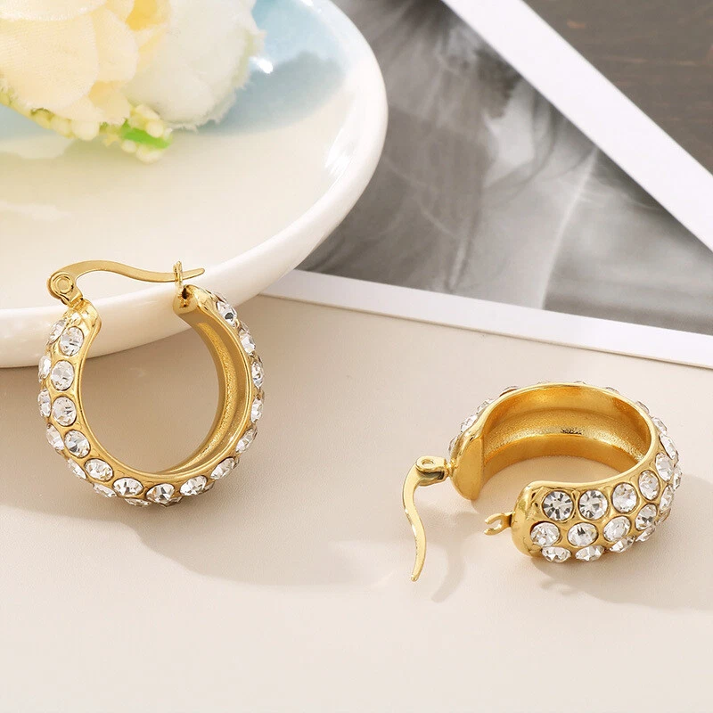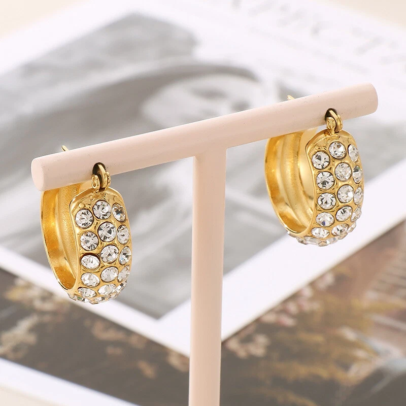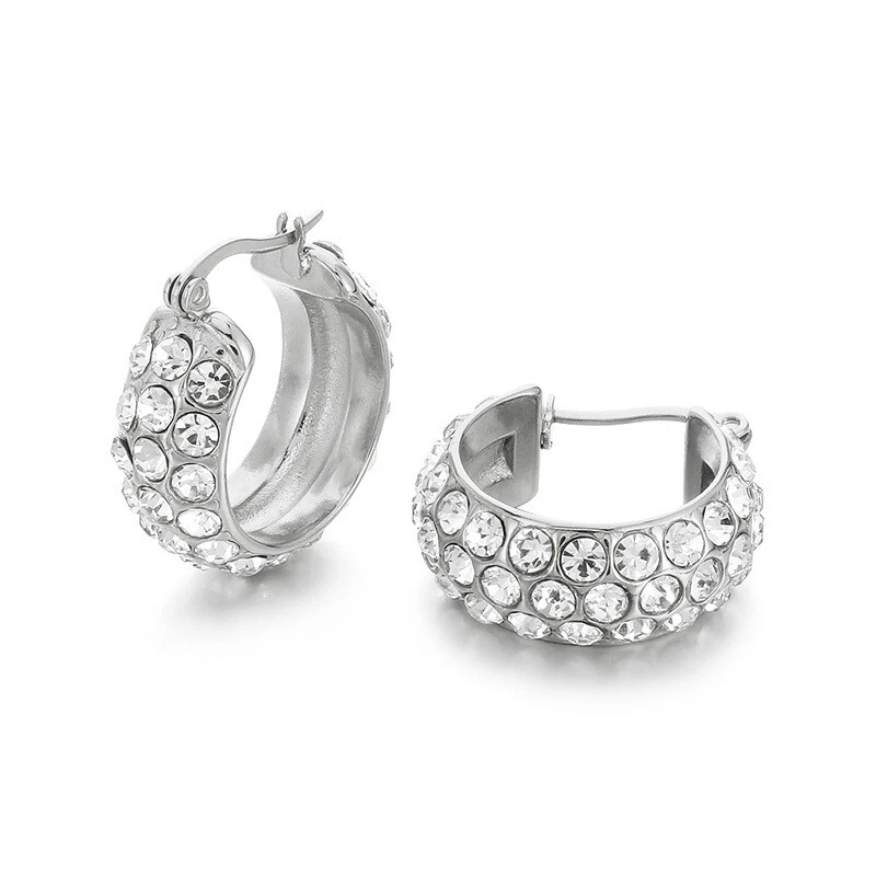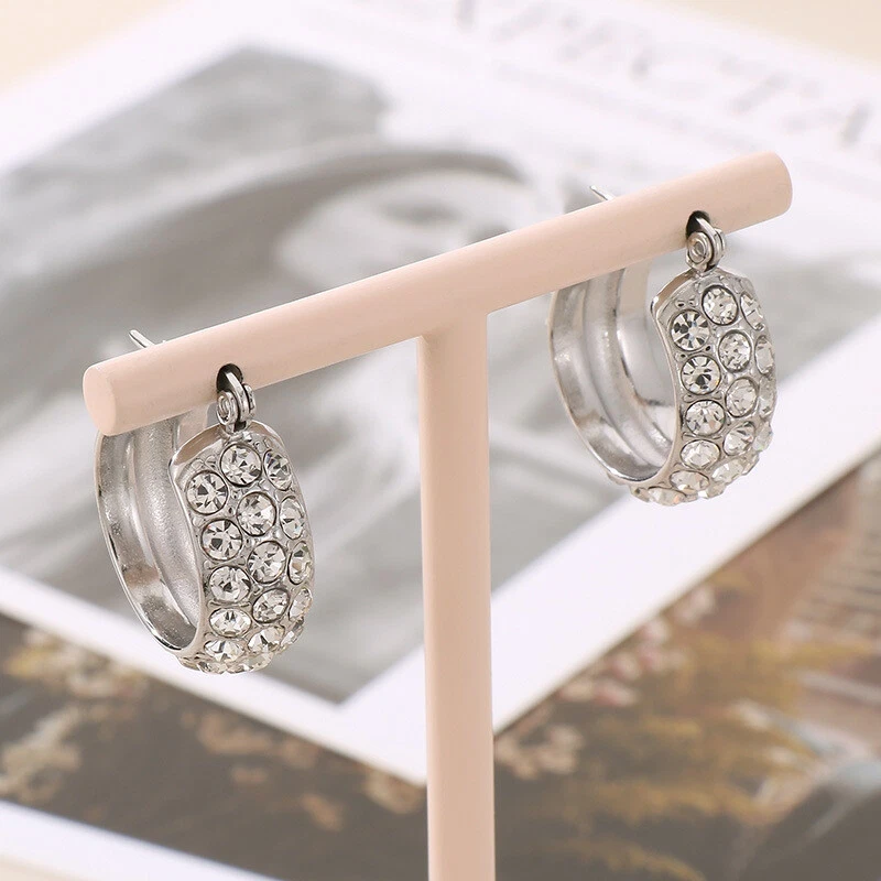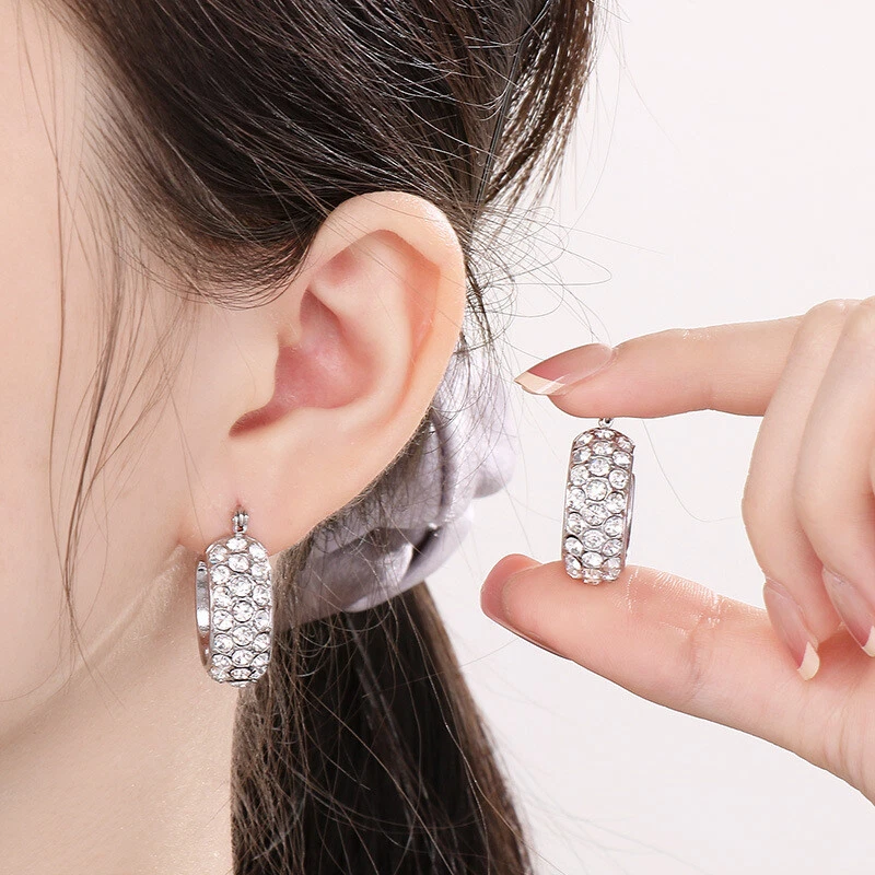 Stylish inlaid rhinestone earrings with titanium steel earrings for girls