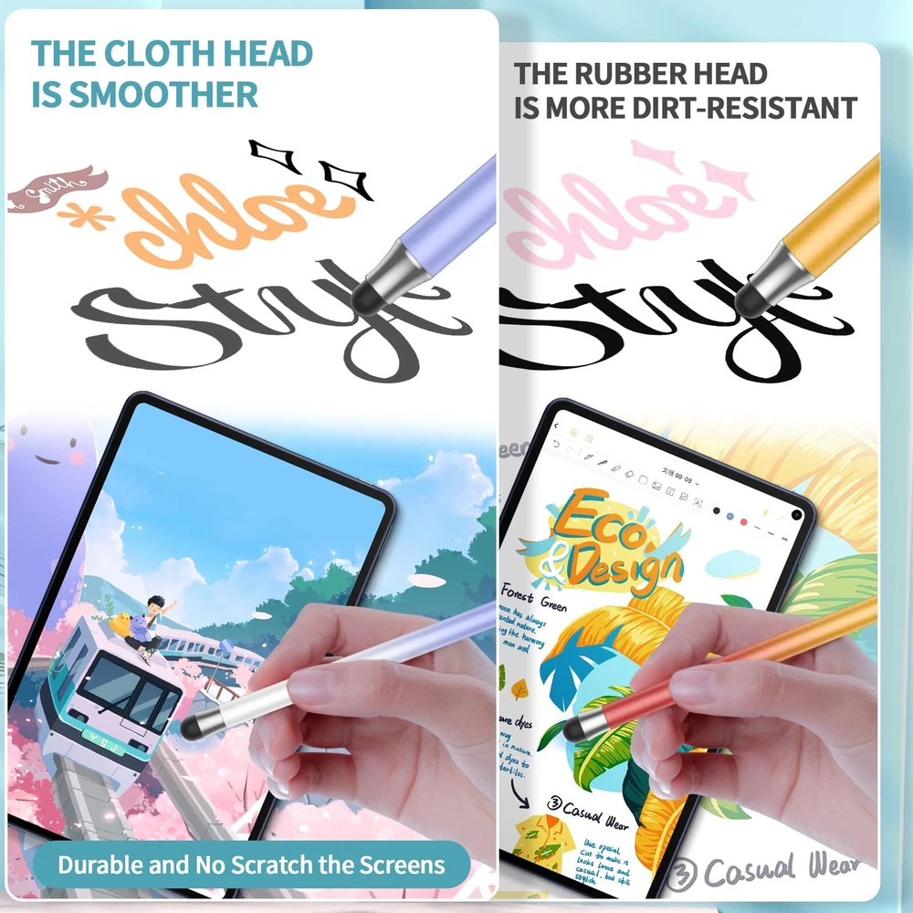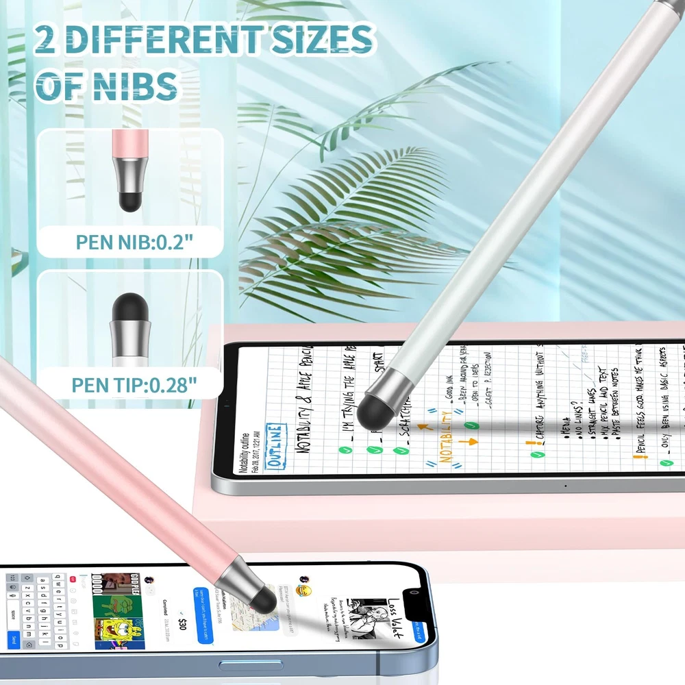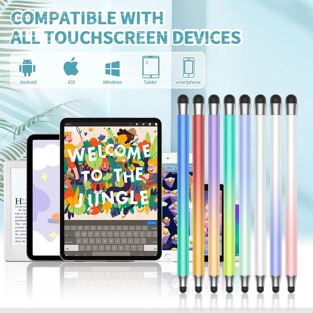 【Dual Rubber Tips for Versatility】 Our stylus features soft rubber tips in different sizes (7mm / 5mm) on each end, allowing for precise control and flexibility to meet your diverse daily tasks. With its sleek aluminum body in eye-catching gradient colors, this stylus pen is lightweight, comfortable to hold, and designed to make big fingers a non-issue. 【High Precision & Anti-Scratch】 This stylus features a high-sensitivity rubber tip that glides smoothly across the screen, offering lag-free precision for writing and drawing. The anti-scratch design protects your device from fingerprints, smudges, and scratches, ensuring a clean and safe touch experience. Enjoy unparalleled accuracy and fluidity in your creative and everyday tasks. 【Instant Use, No Setup Required】Our iPad stylus pen is always ready to go—no Bluetooth pairing, no charging needed. Just pick it up and start writing or drawing instantly. Whether you're capturing spontaneous ideas or sketching out your next big project, it offers a seamless, natural experience every time. 【Broad Compatibility】 Our Stylus Pen is designed for universal compatibility, working seamlessly with a wide range of capacitive touch screen devices including iPhone, iPad, Android phones, Samsung Galaxy, , Chromebooks, Microsoft Surface, and more. Whether it's for drawing, note-taking, or browsing, this versatile stylus meets all your needs across multiple platforms. 【Increase Fun and Creativity】The bright colors of this touch screen stylus will inspire creativity, making using it a more interactive and enjoyable experience. Whether it's learning or playing, it turns screen time into a fun, engaging and imaginative activity.